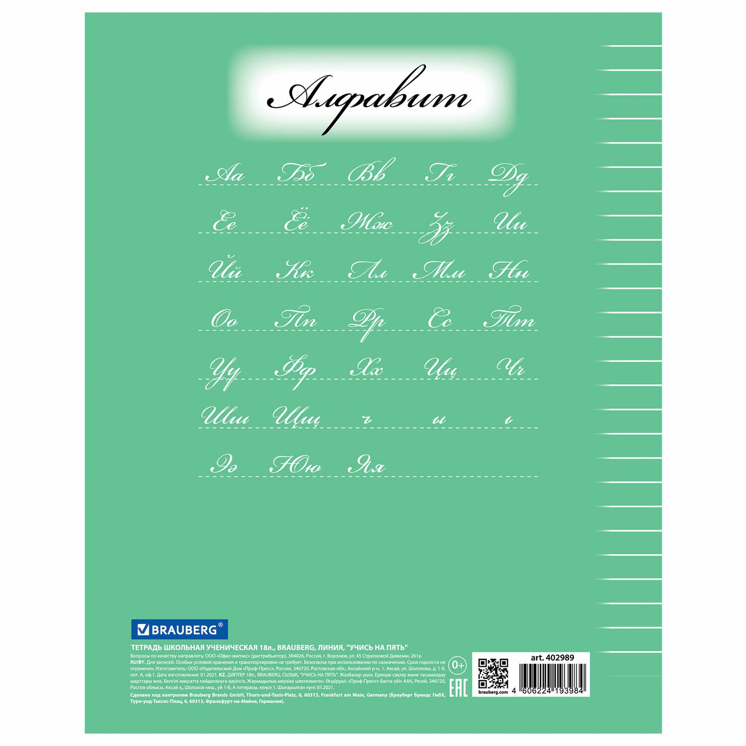 Тетрадь 18 л. BRAUBERG ЭКО "5-КА", линия, обложка плотная мелованная бумага, ЗЕЛЕНАЯ, 402989