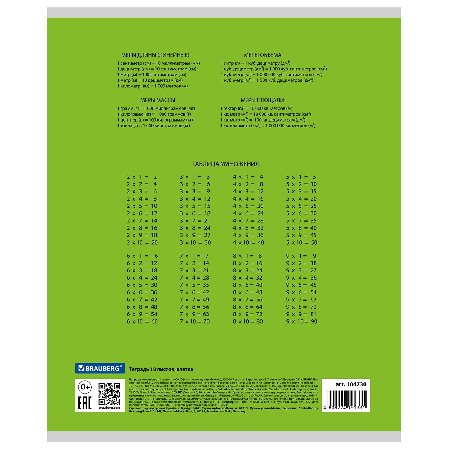 Тетрадь 18 л. BRAUBERG КЛАССИКА, клетка, обложка картон, ЗЕЛЕНАЯ, 104730