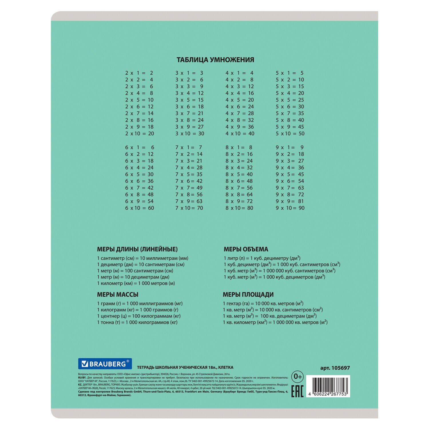 Тетрадь 18 л. BRAUBERG КЛАССИКА, клетка, обложка картон, ЗЕЛЕНАЯ, 104730