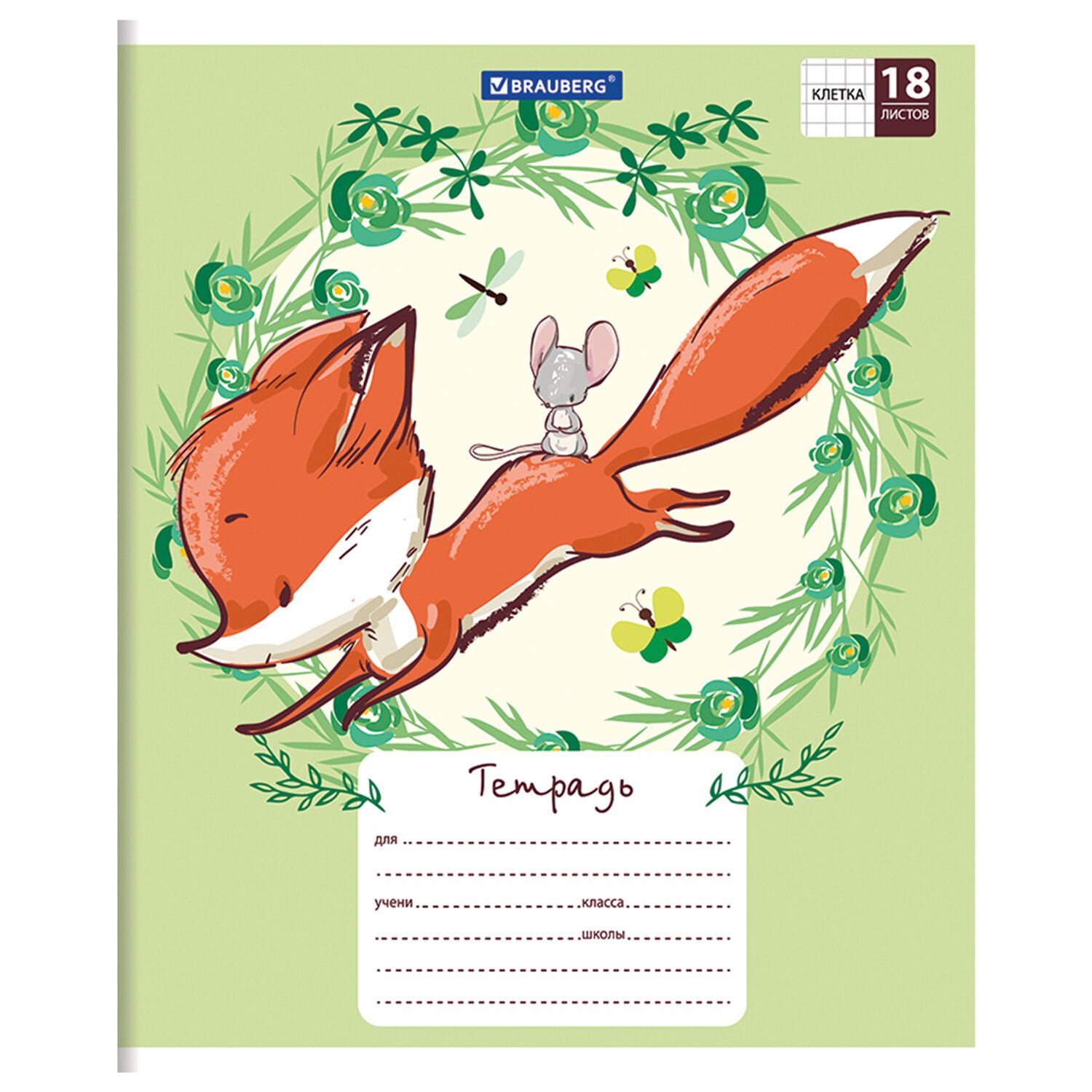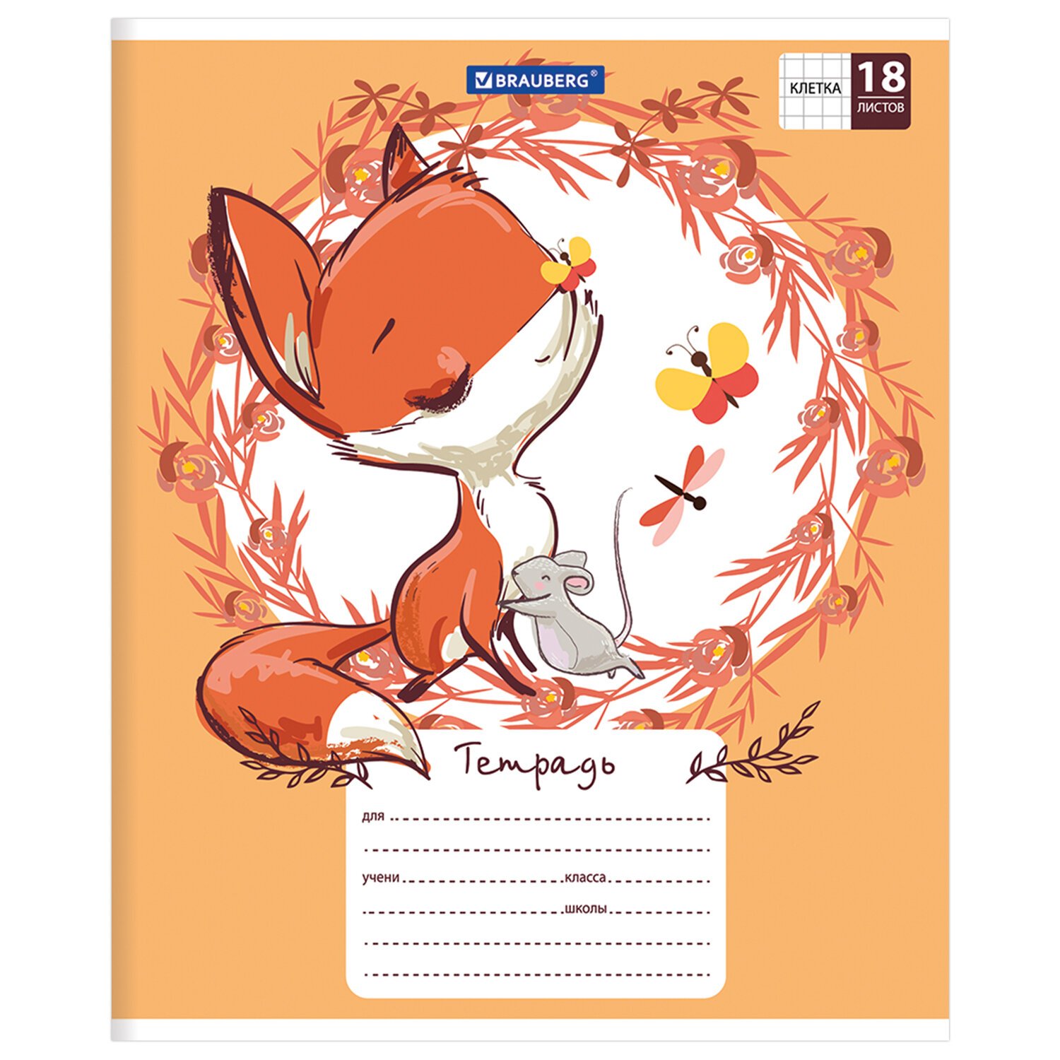 Тетрадь 18 л. BRAUBERG, клетка, обложка картон, CUTE FOX, 402992