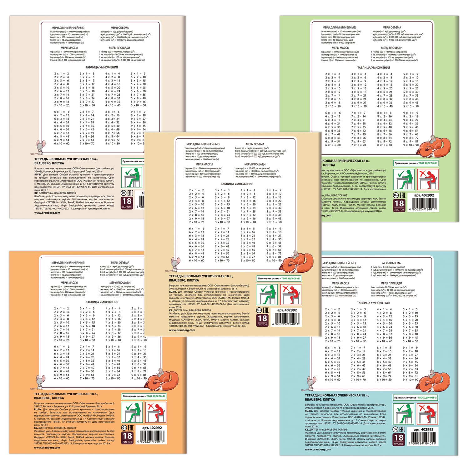 Тетрадь 18 л. BRAUBERG "КЛАССИКА NEW" клетка, обложка картон, АССОРТИ (5 видов), 105695