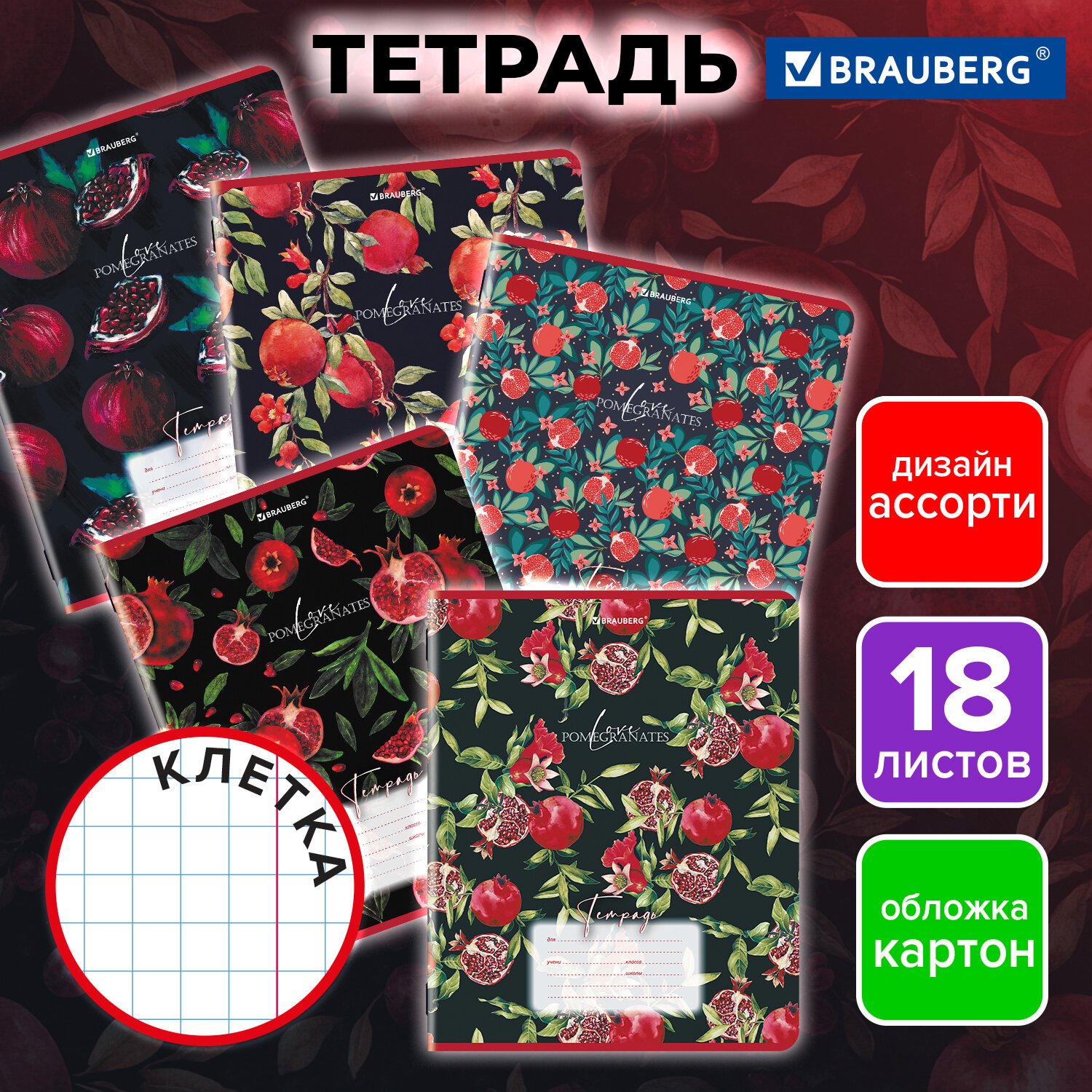 Тетрадь 18 л. BRAUBERG, клетка, обложка картон, ГРАНАТ, 107296