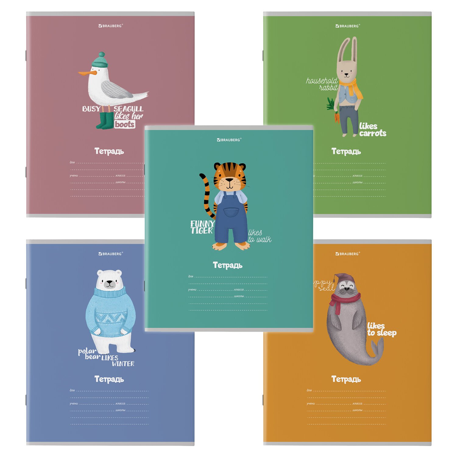 Тетрадь 18 л. BRAUBERG клетка, обложка картон, "МОДНЫЕ ЖИВОТНЫЕ", 106480