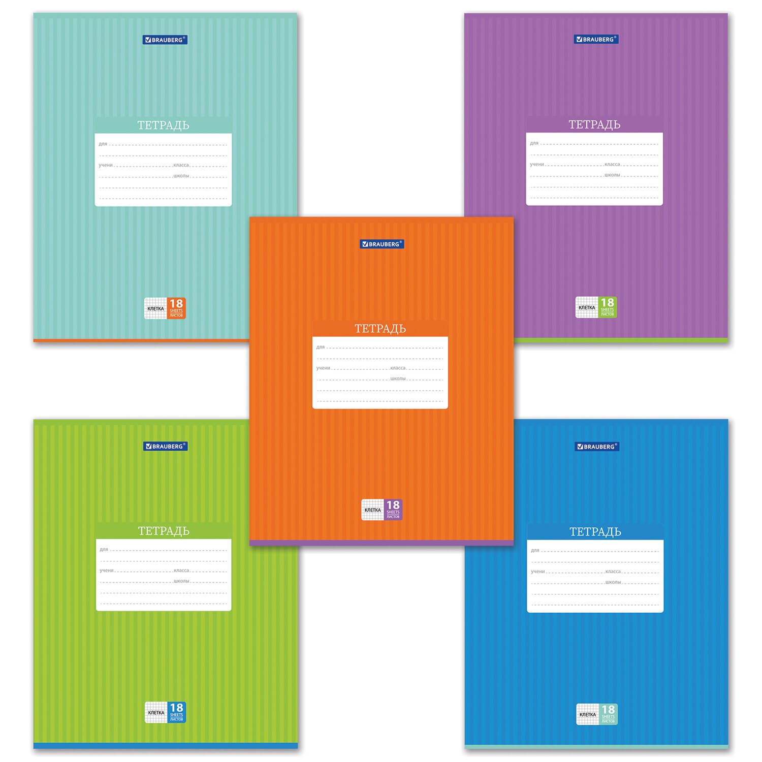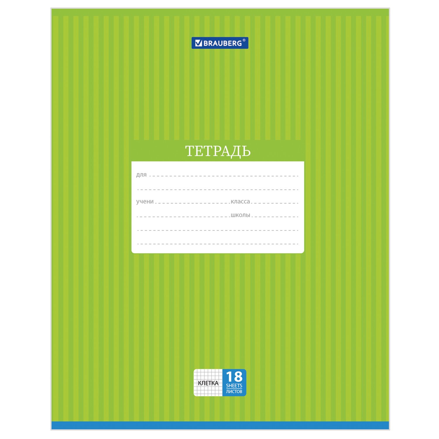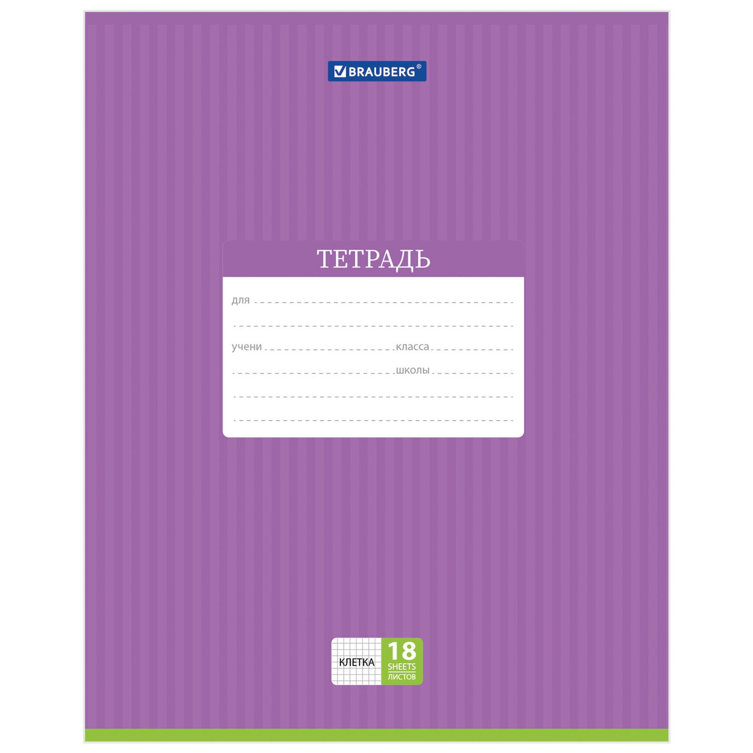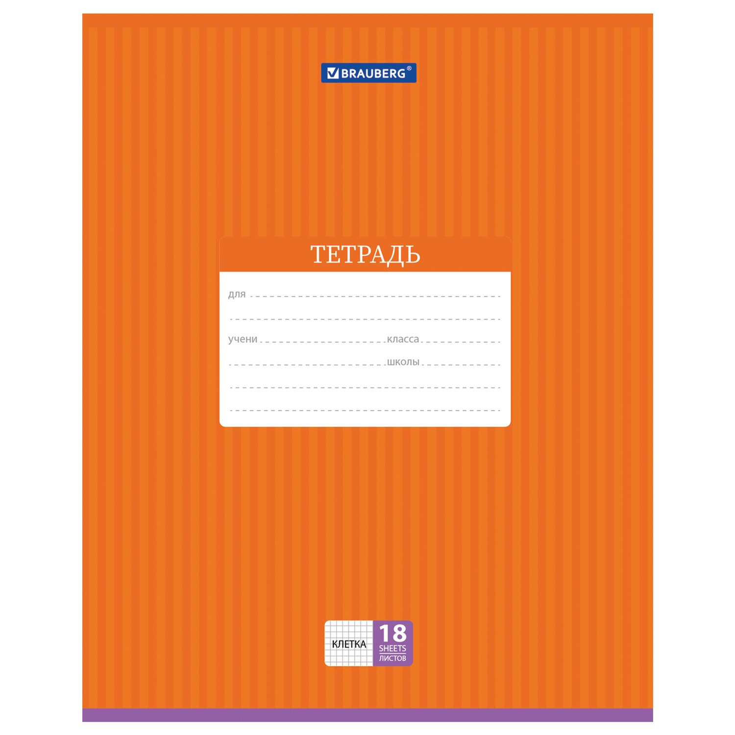 Тетрадь 18 л. BRAUBERG, клетка, обложка картон, ПОЛОСКИ ОДНОТОННЫЕ, 401856