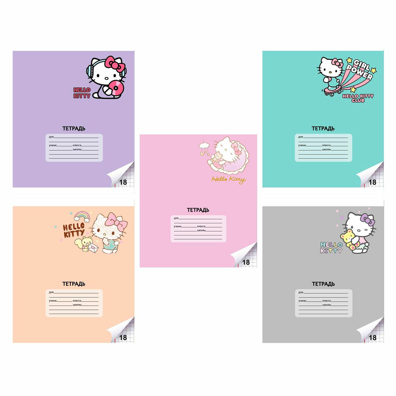 Тетрадь 18 л. CENTRUM клетка, обложка картон, "Hello Kitty" (микс в спайке), 74544