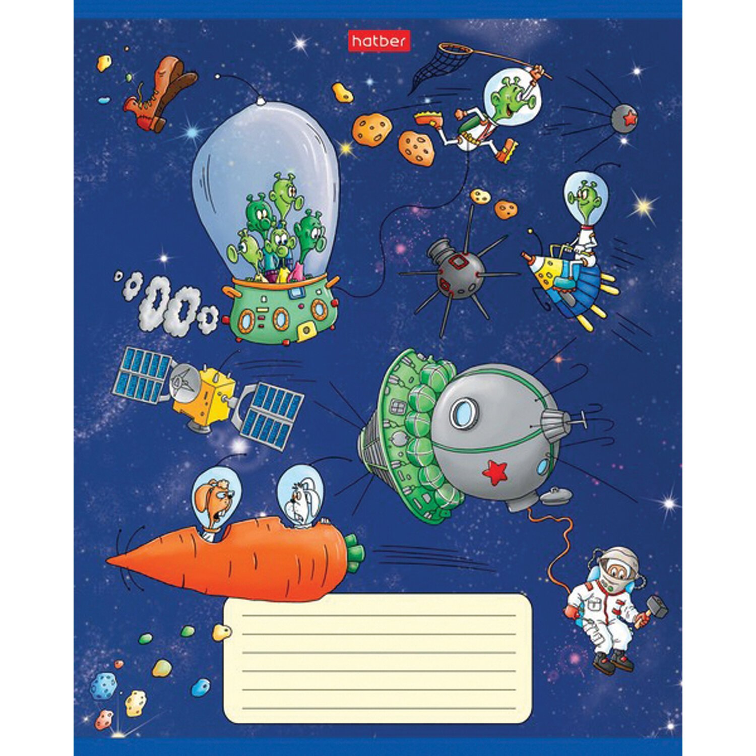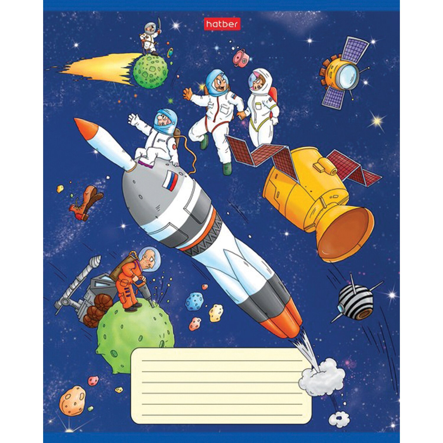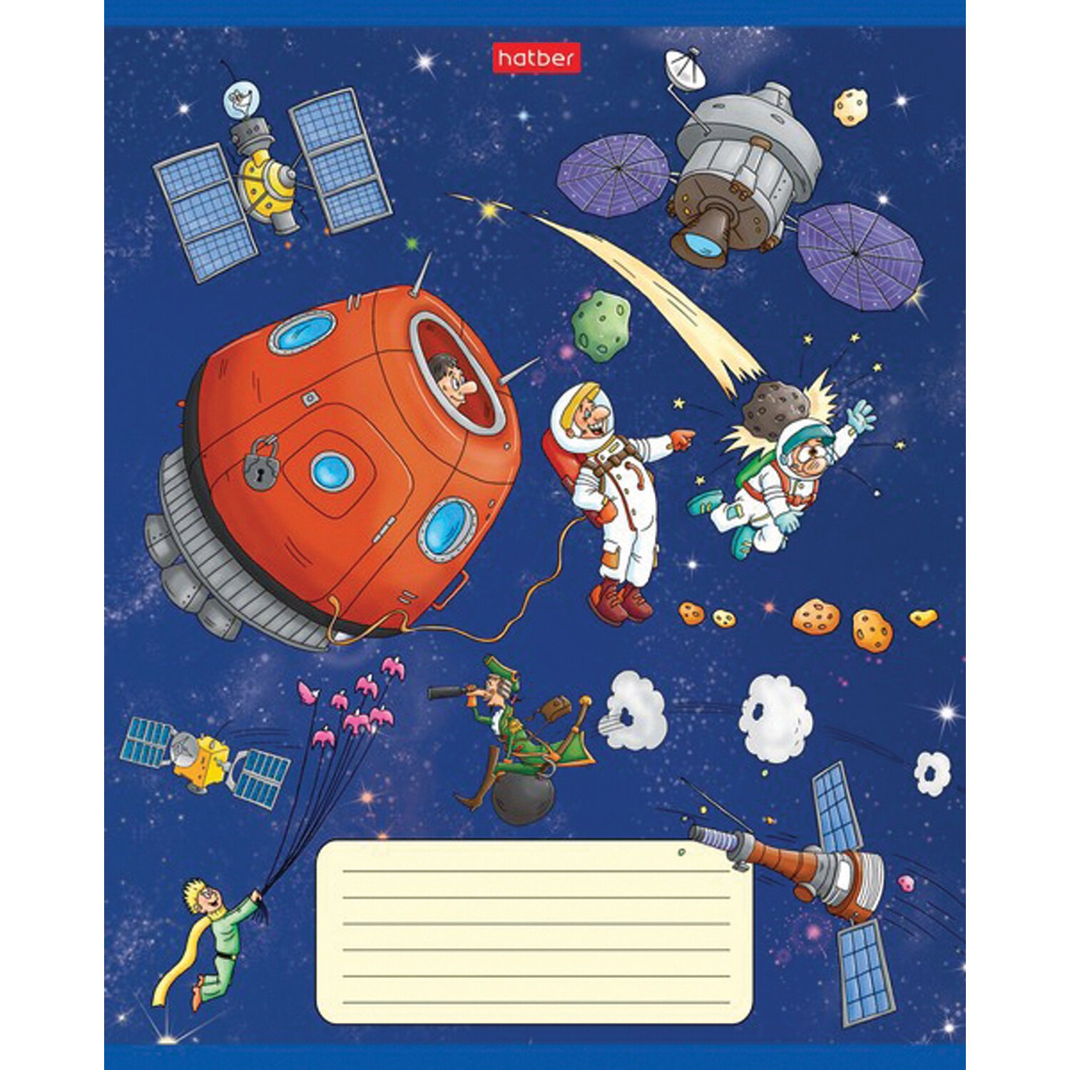 Тетрадь 18 л. HATBER клетка, обложка картон, "Космическое приключение" (5 видов в спайке),18Т5В1
