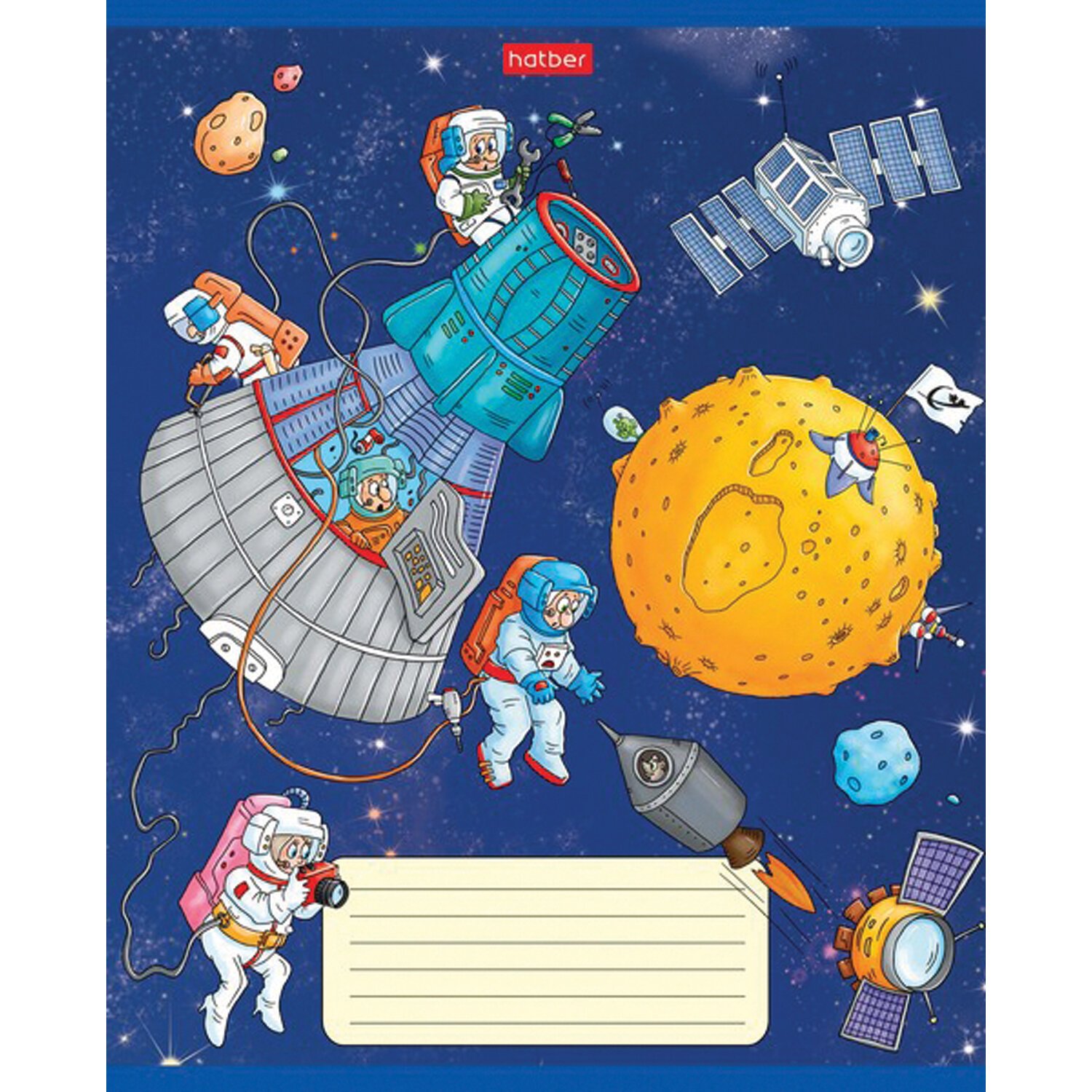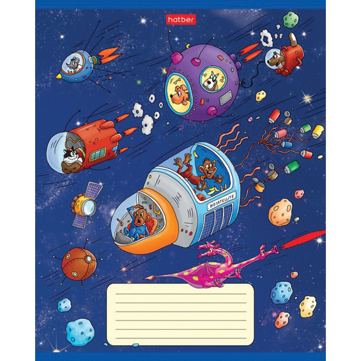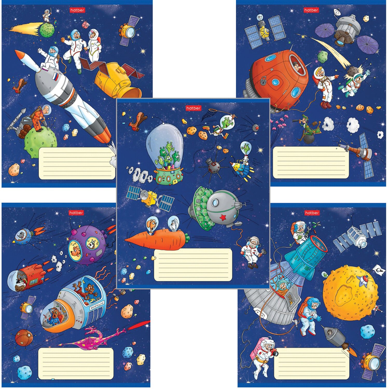 Тетрадь 18 л. HATBER клетка, обложка картон, "Космическое приключение" (5 видов в спайке),18Т5В1