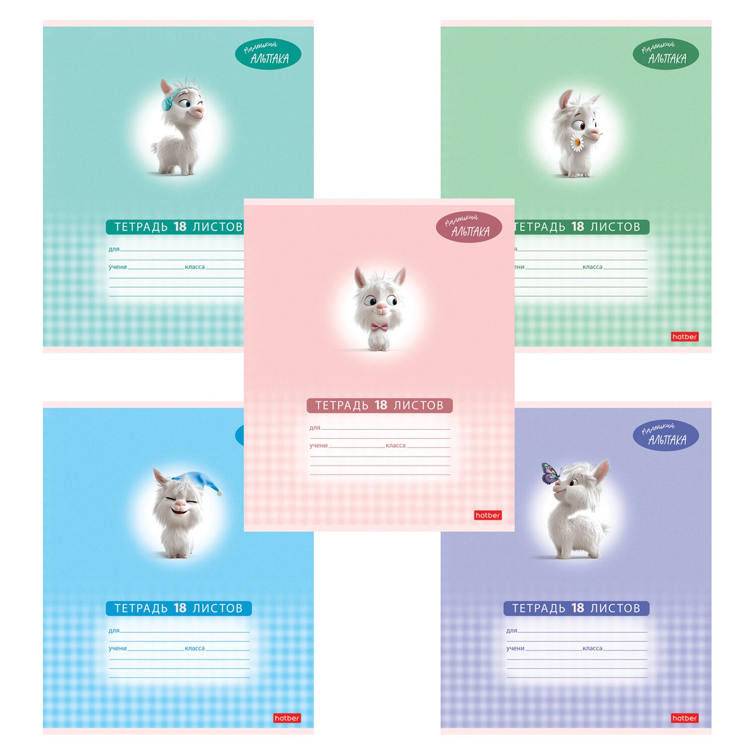 Тетрадь 18 л., HATBER клетка, обложка картон, "Маленький альпака" (микс в спайке), 091390, 18Т5В1