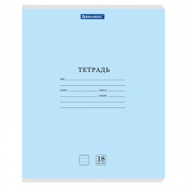 Тетрадь 18л. BRAUBERG КЛАССИКА NEW линия, обложка картон, СИНЯЯ, 107781