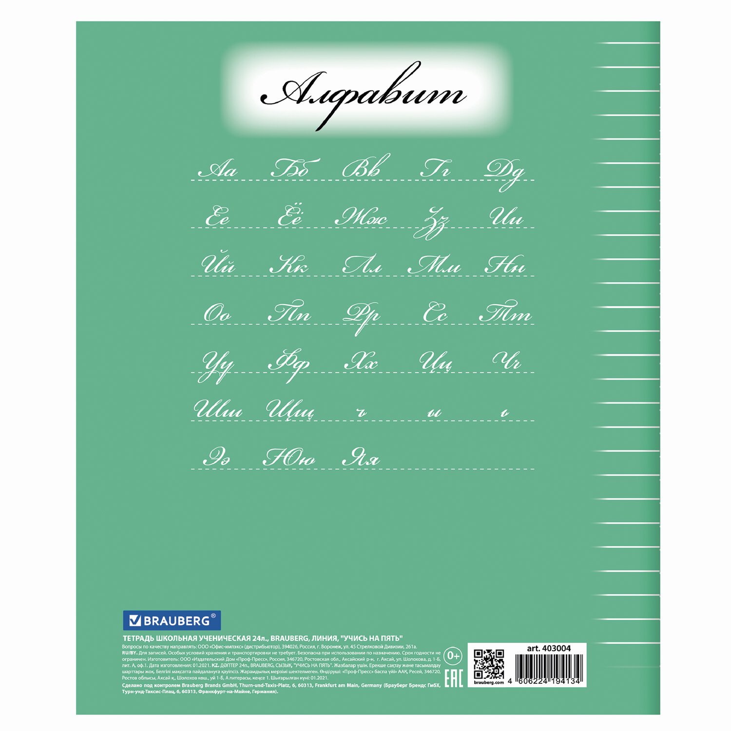 Тетрадь 24 л. BRAUBERG ЭКО "5-КА", линия, обложка плотная мелованная бумага, ЗЕЛЕНАЯ, 403004