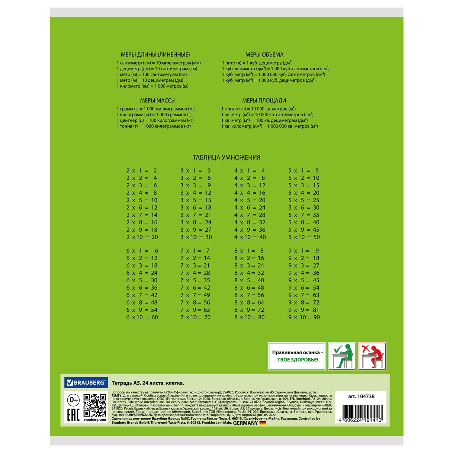Тетрадь 24 л. BRAUBERG ЭКО "5-КА", клетка, обложка плотная мелованная бумага, ЗЕЛЕНАЯ, 403003