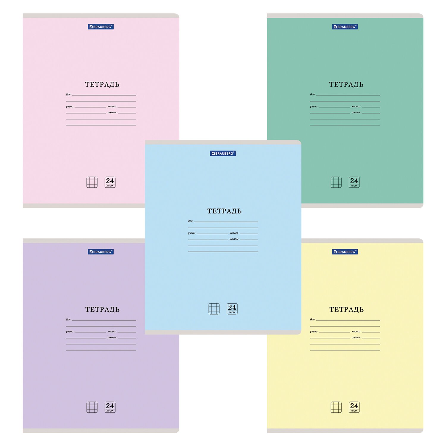 Тетрадь 24 л. BRAUBERG КЛАССИКА NEW клетка, обложка картон, АССОРТИ (5 видов), 105702