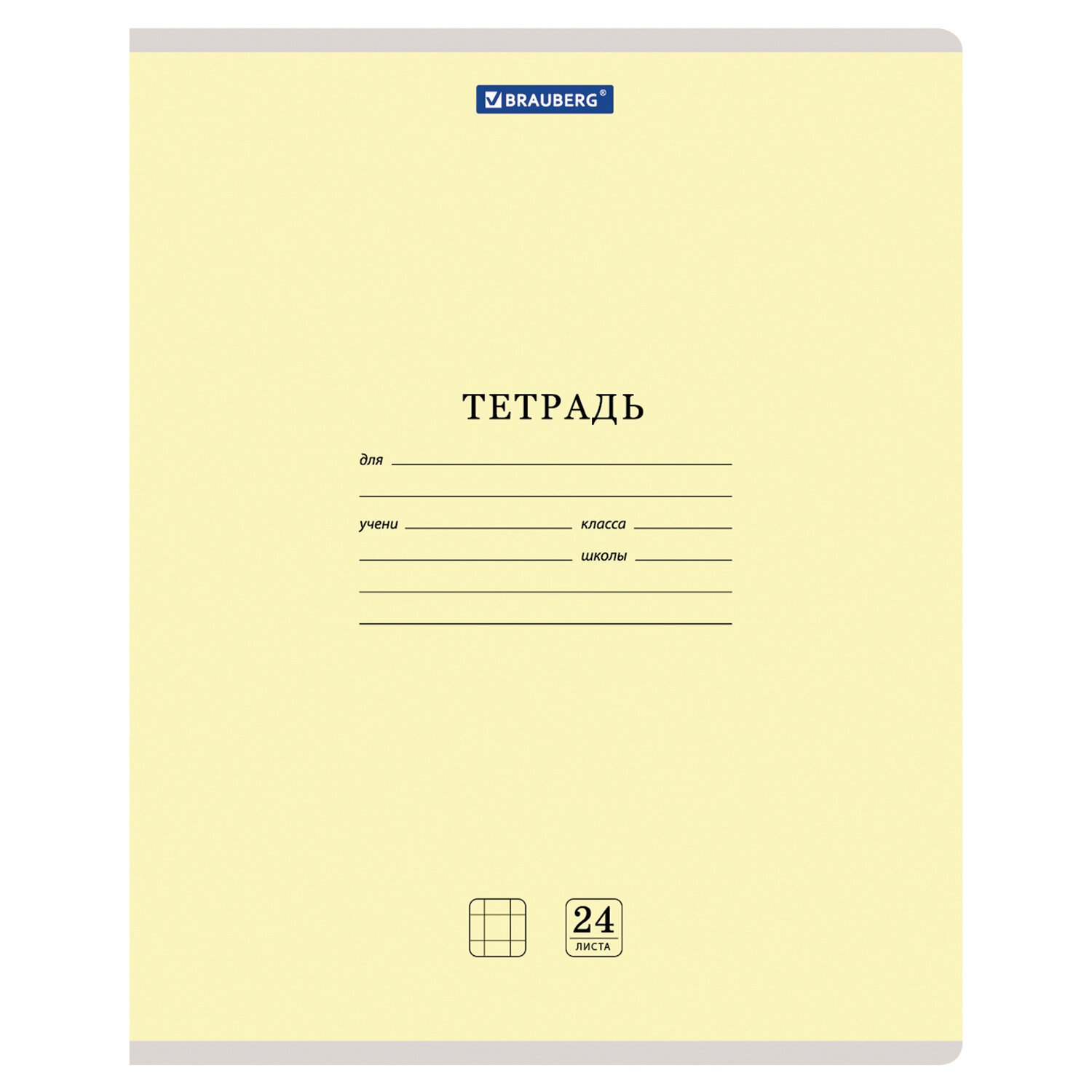 Тетрадь 24 л. BRAUBERG КЛАССИКА, клетка, обложка картон, ЖЕЛТАЯ, 104736