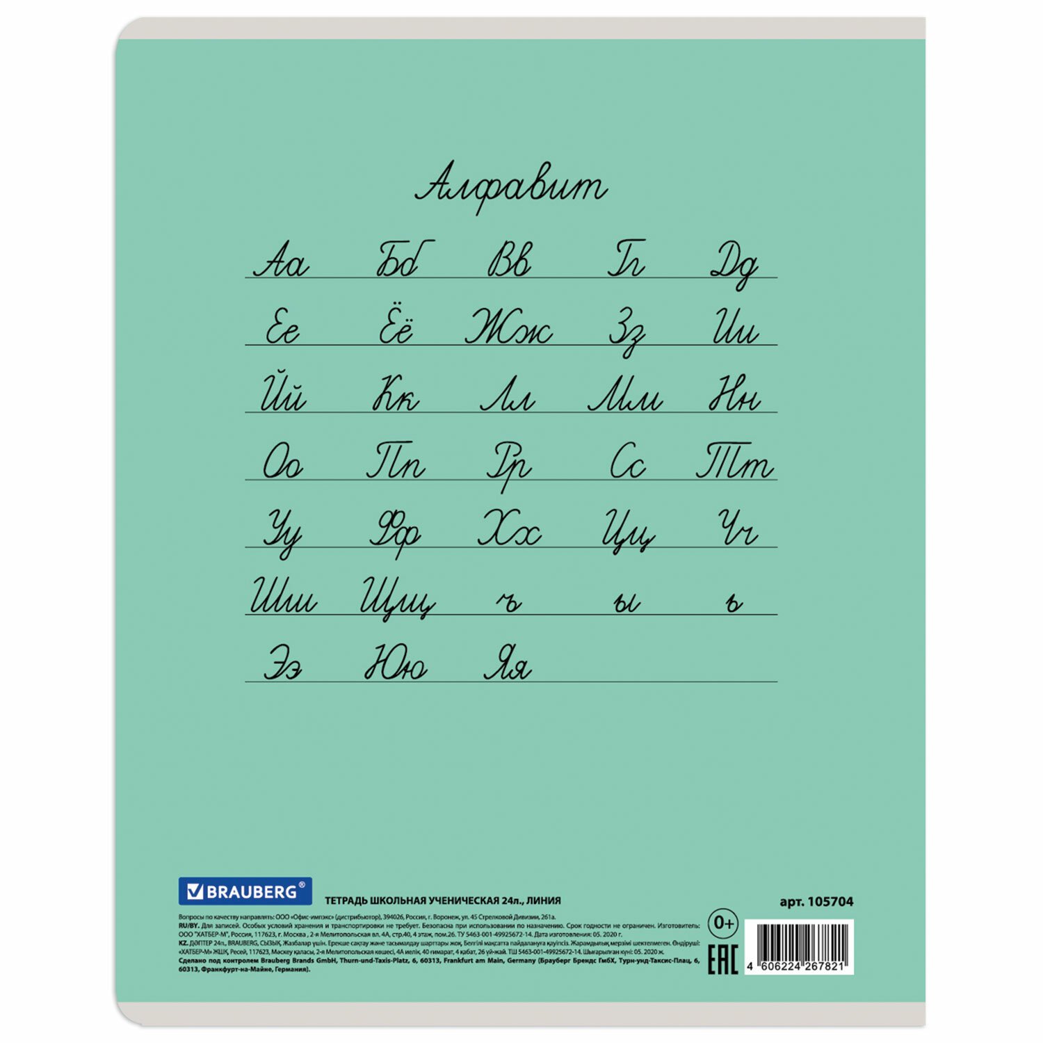 Тетрадь 24 л. BRAUBERG ЭКО "5-КА", линия, обложка плотная мелованная бумага, ЗЕЛЕНАЯ, 403004