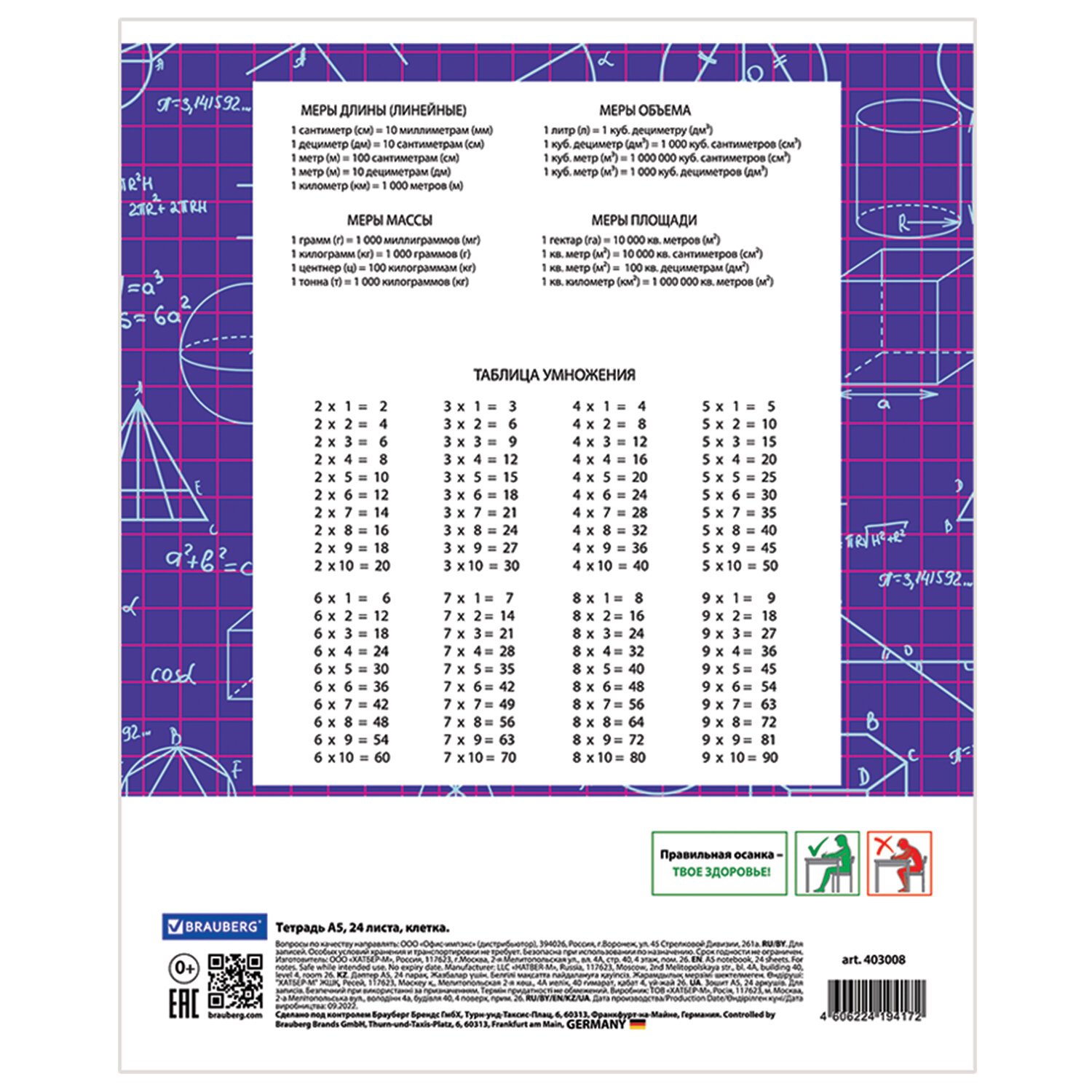 Тетрадь 24 л. BRAUBERG, клетка, обложка картон, ЧЕРТЕЖИ И ФОРМУЛЫ, 403008