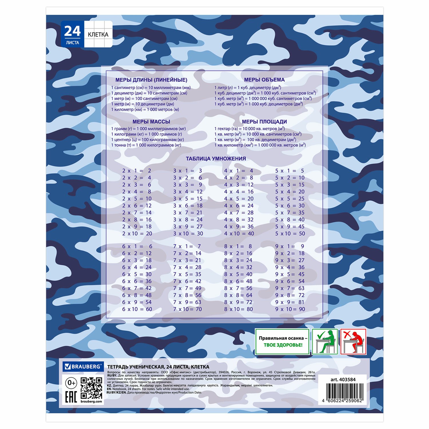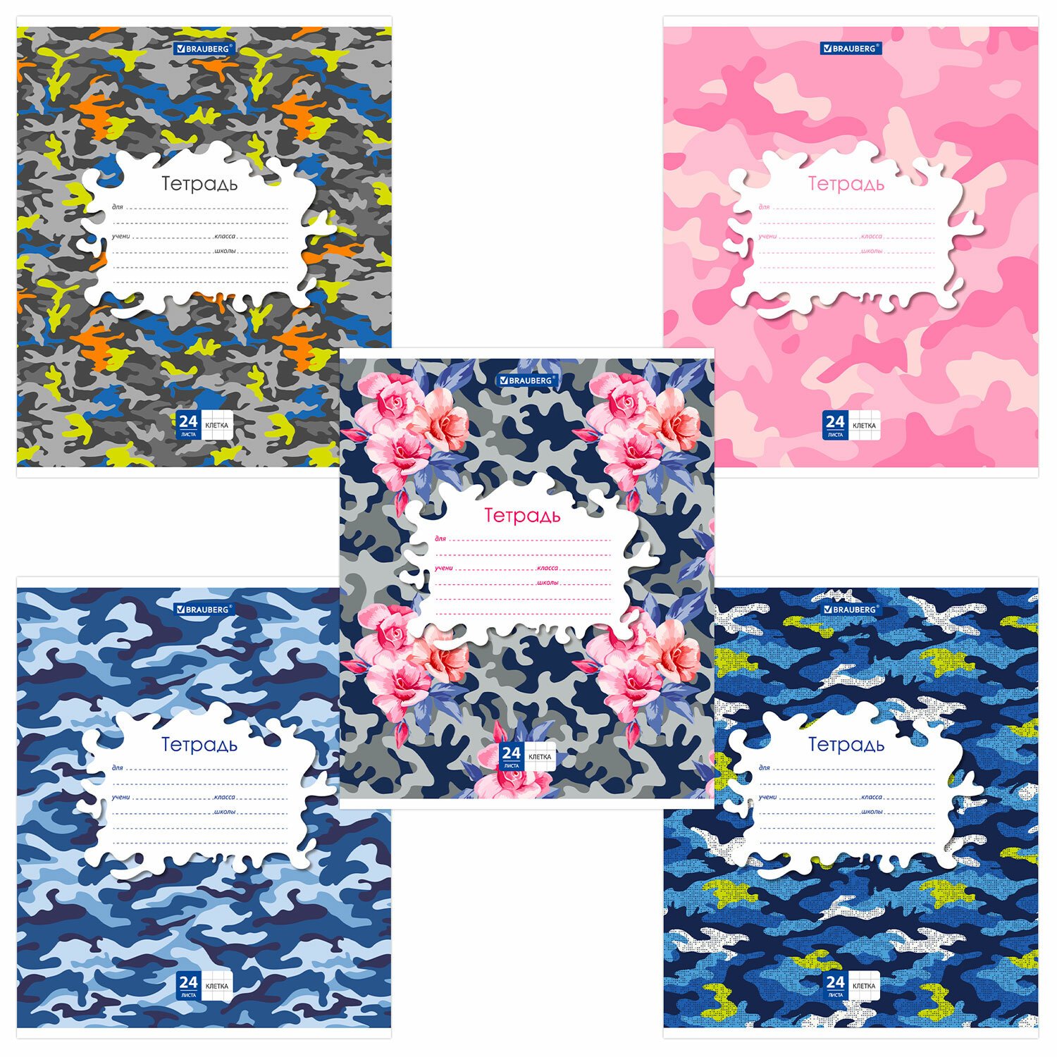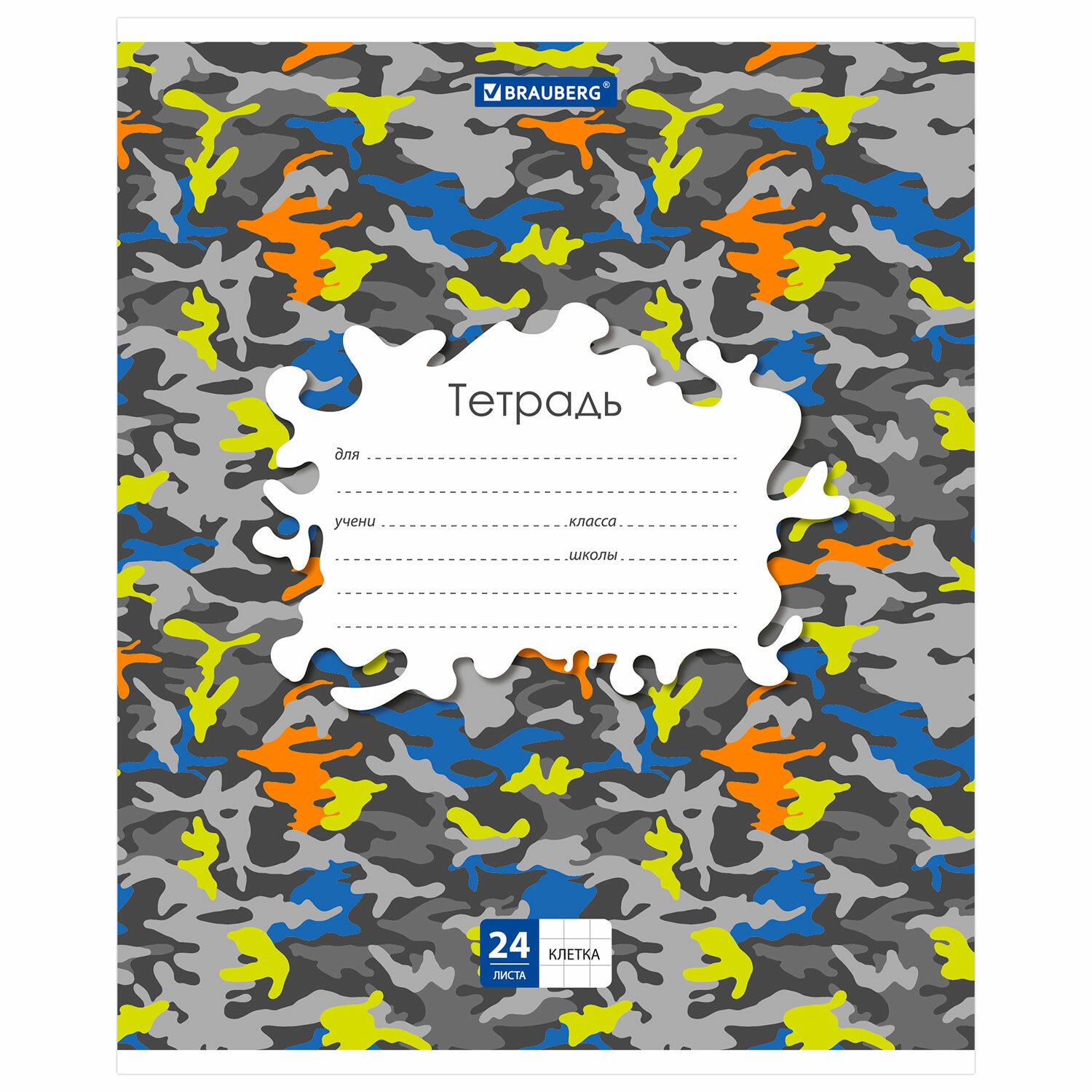 Тетрадь 24 л. BRAUBERG клетка, обложка картон, "КАМУФЛЯЖ", 403584