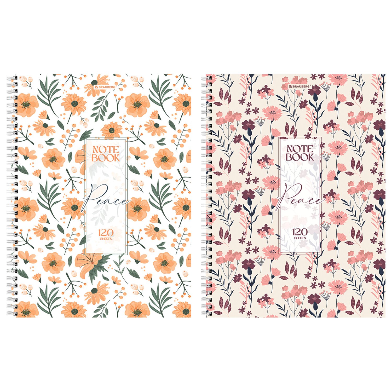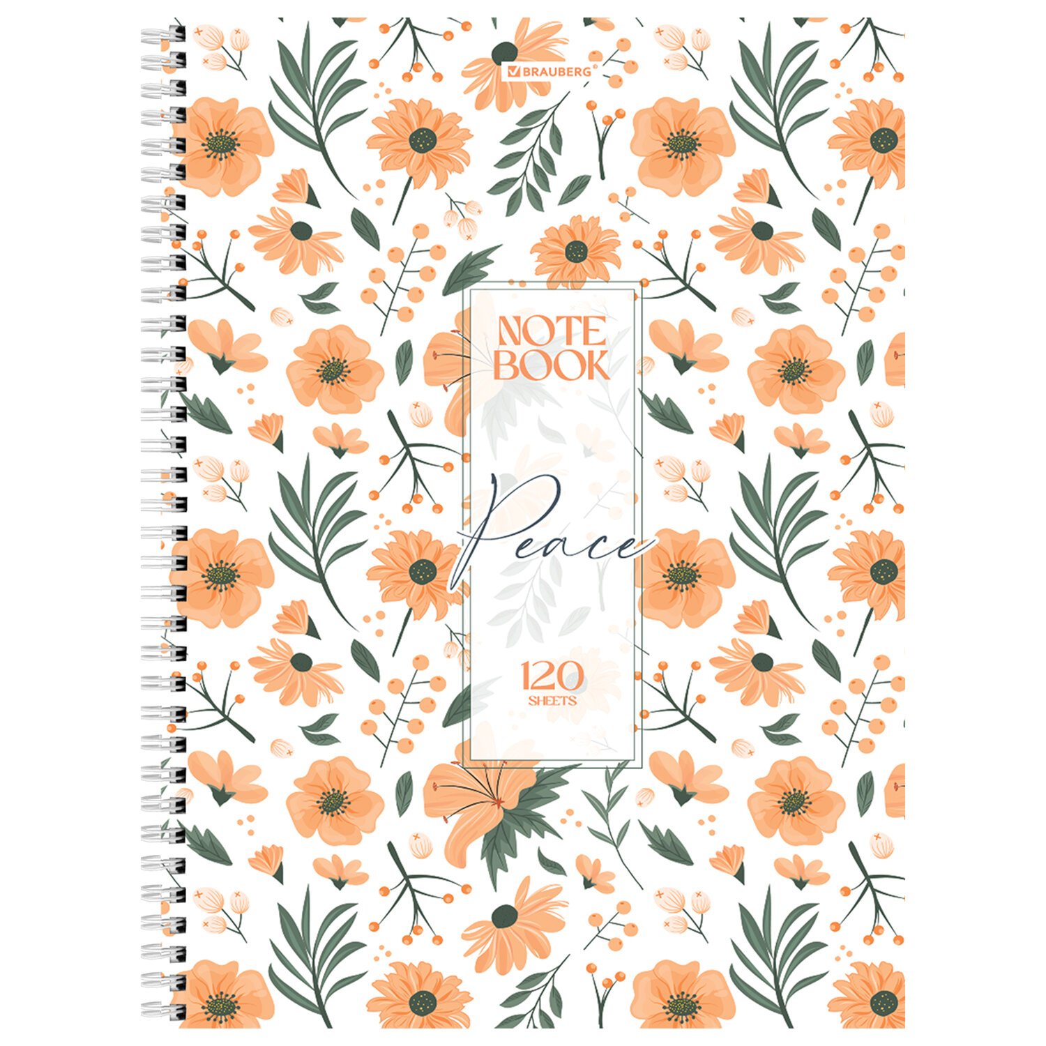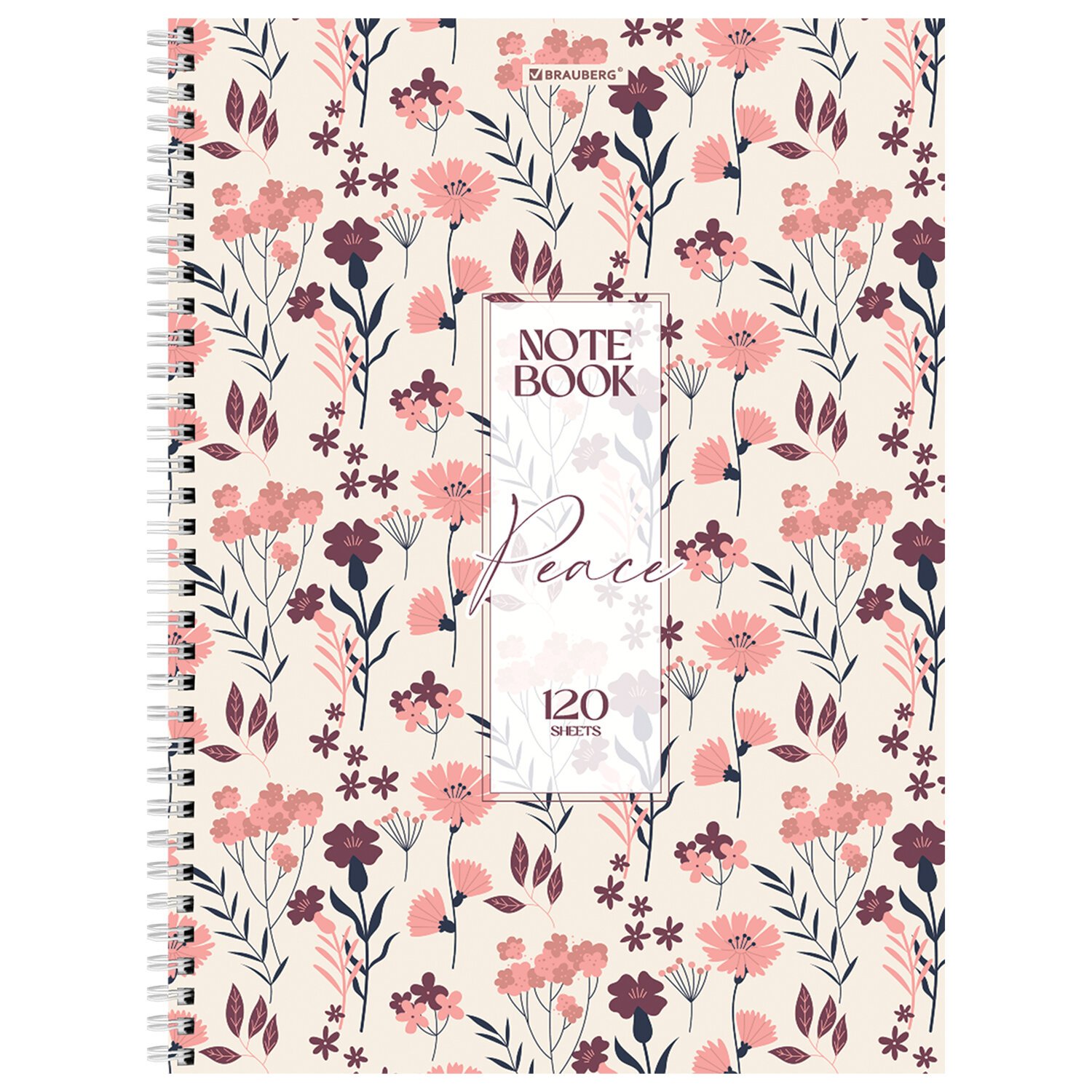 Тетрадь А4, 120 л., BRAUBERG, гребень, клетка, матовая ламинация, "Цветочный паттерн", 405646