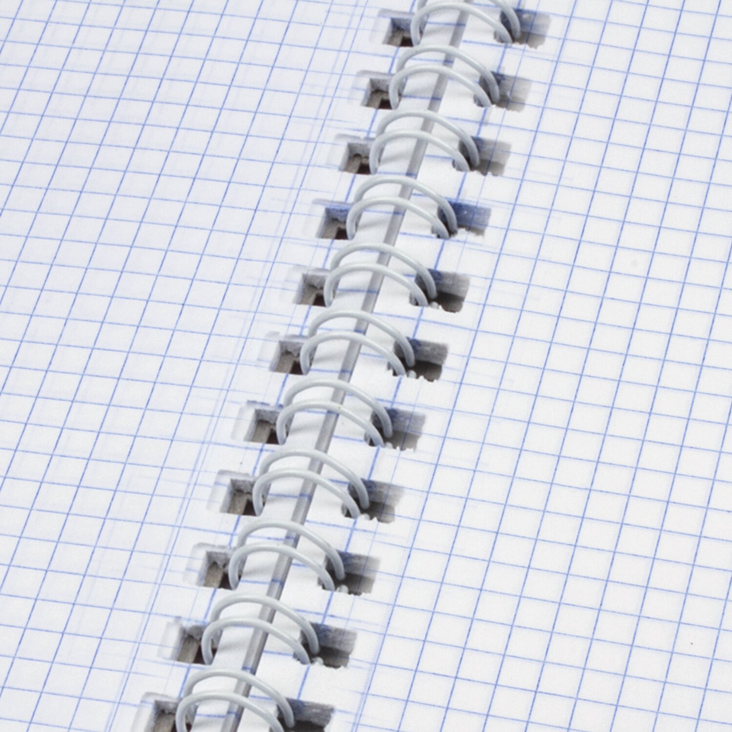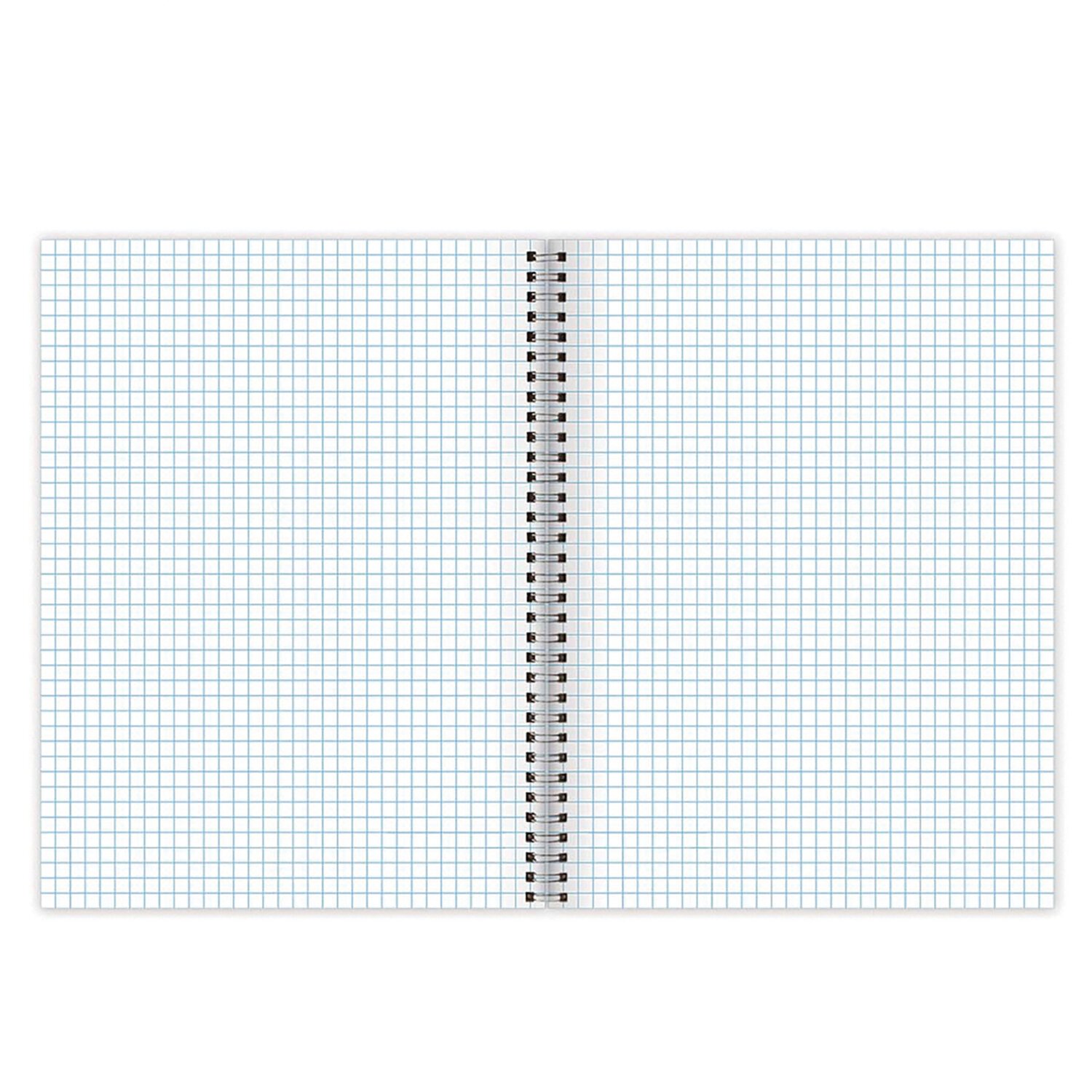 Внутренний блок содержит 120 листов офсетной бумаги плотностью 65 г/м2. Обложка изготовлена из мелованного картона. Линовка – клетка. Евроспираль надежно скрепляет листы между собой. Белизна – 100%. Формат А4.