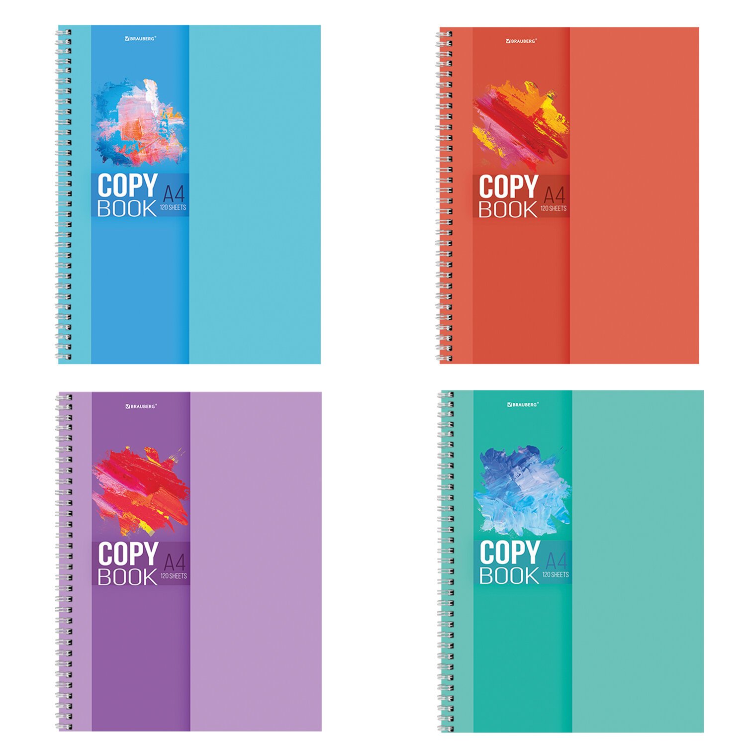 Тетрадь А4, 120 л., BRAUBERG, гребень, клетка, обложка твердая, "Office", 404073