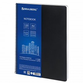 Тетрадь А4, 120 л., BRAUBERG, гребень, клетка, обложка твердая, "Office", 404073