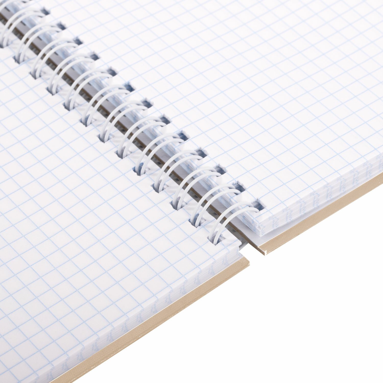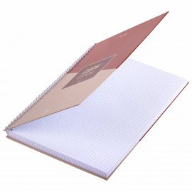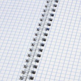 Внутренний блок содержит 120 листов офсетной бумаги плотностью 65 г/м2. Жесткая обложка с глянцевой ламинацией. Линовка – клетка. Евроспираль надежно скрепляет листы между собой. Белизна – 100%. Формат А4.