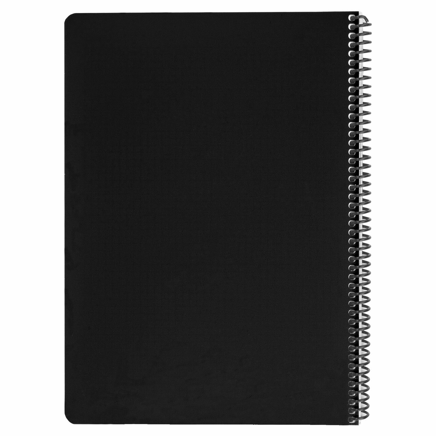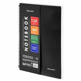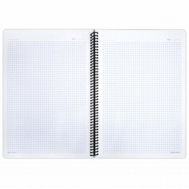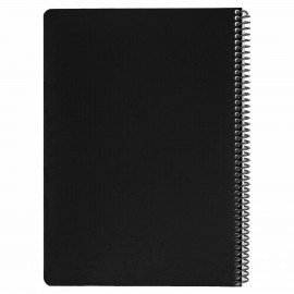 Пластиковая обложка черного цвета надежно защитит внутренний блок от повреждений. Внутренний блок содержит 120 листов офсетной бумаги плотностью 70 г/м2 и белизной 100%. Линовка блока - клетка, с полями. Листы соединены спиралью. Формат А4 (210х297 мм).