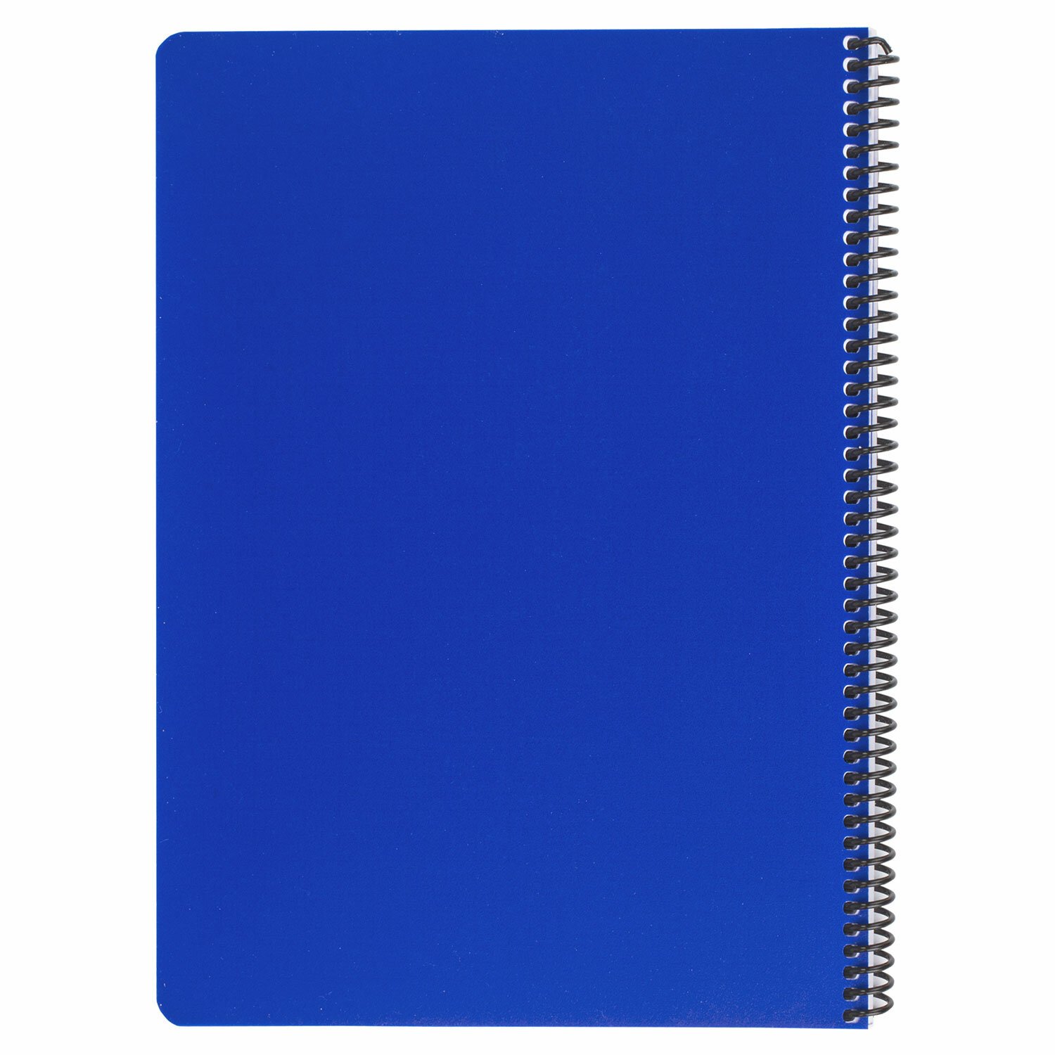 Пластиковая обложка синего цвета надежно защитит внутренний блок от повреждений. Внутренний блок содержит 120 листов офсетной бумаги плотностью 70 г/м2 и белизной 100%. Линовка блока – клетка, с полями. Листы соединены спиралью. Формат А4 (210х297 мм).