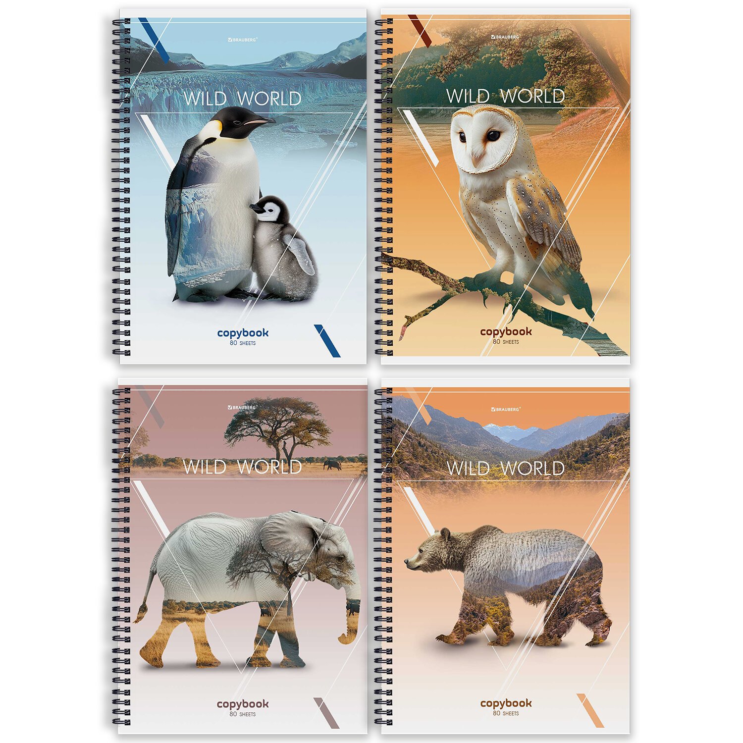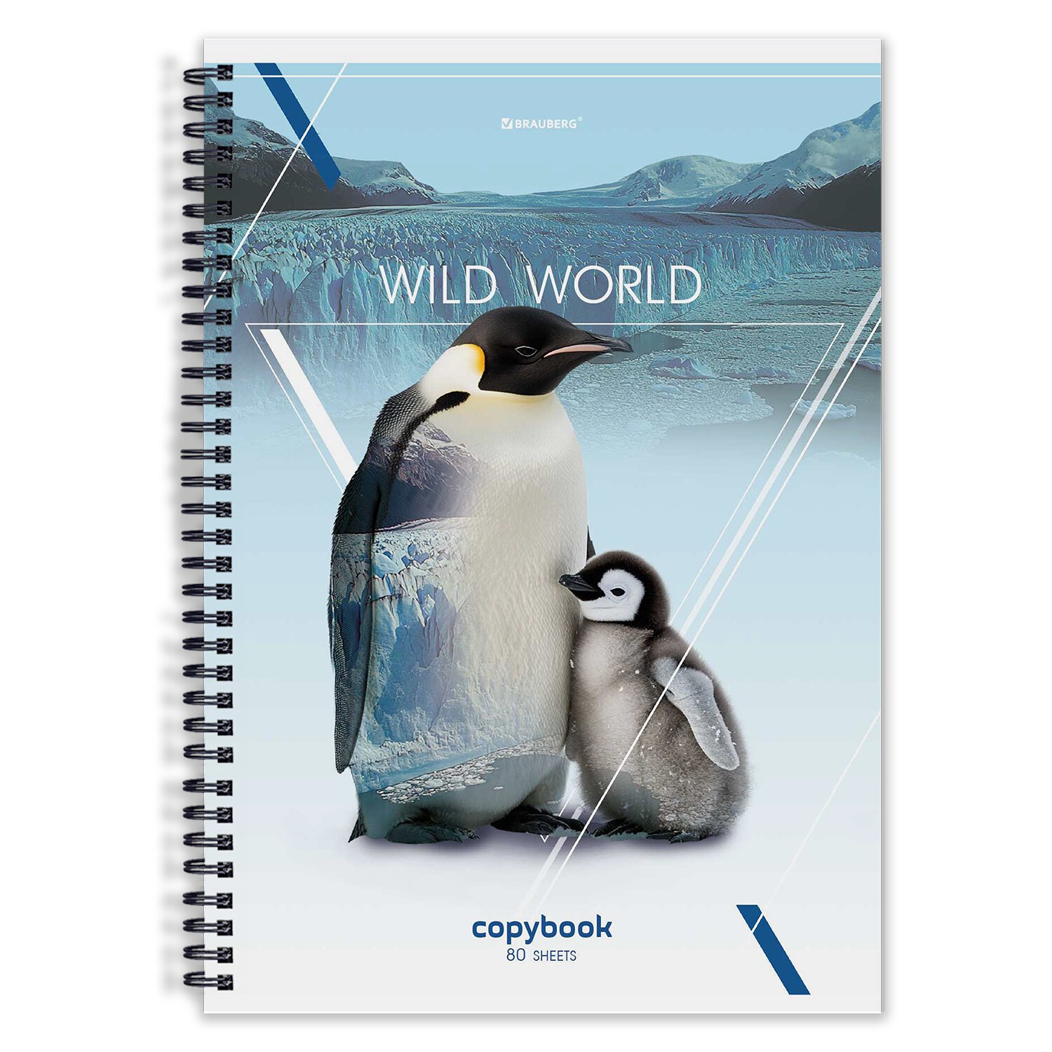 Тетрадь А4, 80 л., BRAUBERG, гребень, клетка, глянцевый лак, WILD, 404052