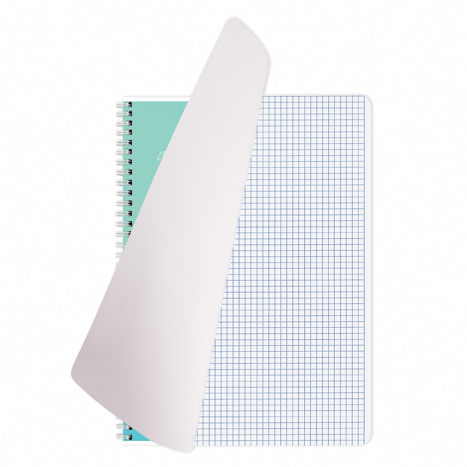 Внутренний блок содержит 80 листов офсетной бумаги плотностью 65 г/м2. Обложка изготовлена из мелованного картона. Линовка – клетка. Евроспираль надежно скрепляет листы между собой. Белизна – 100%. Формат А4.
