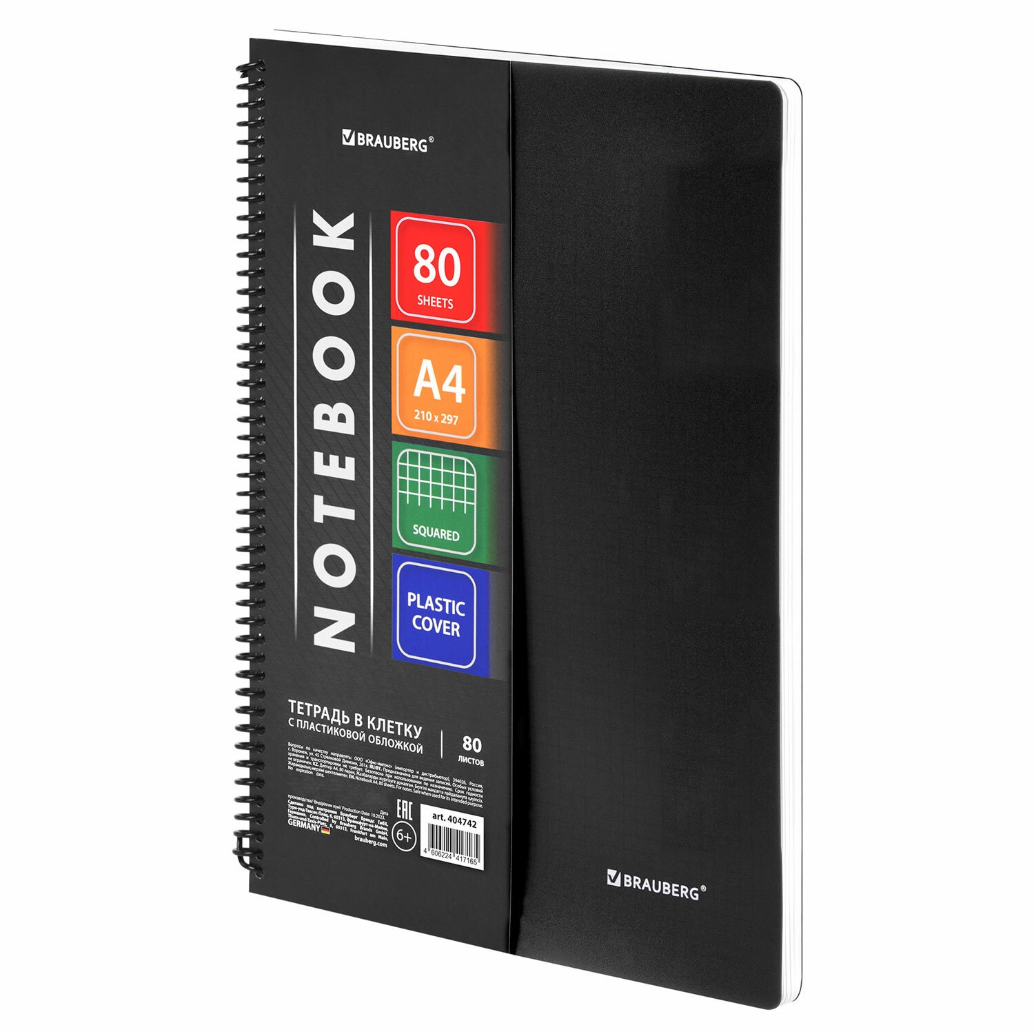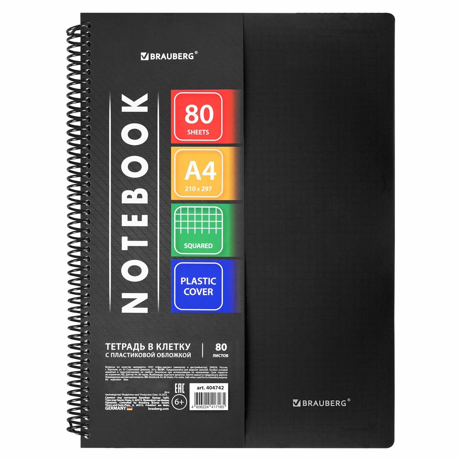 Пластиковая обложка черного цвета надежно защитит внутренний блок от повреждений. Внутренний блок содержит 80 листов офсетной бумаги плотностью 70 г/м2 и белизной 100%. Линовка блока - клетка, с полями. Листы соединены спиралью. Формат А4 (210х297 мм).