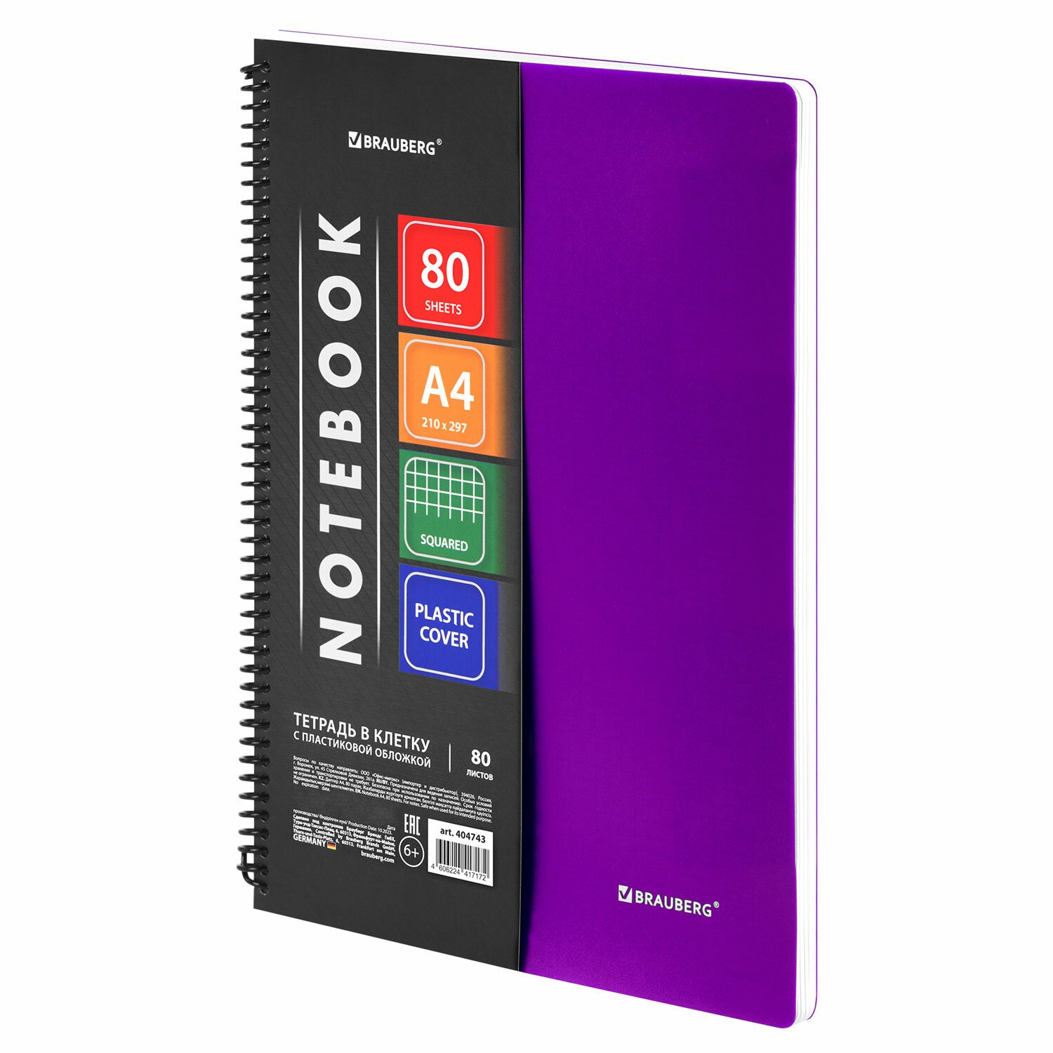 Тетрадь А4 80 л. BRAUBERG "Metropolis", спираль пластиковая, клетка, обложка пластик, ФИОЛЕТОВЫЙ, 404743