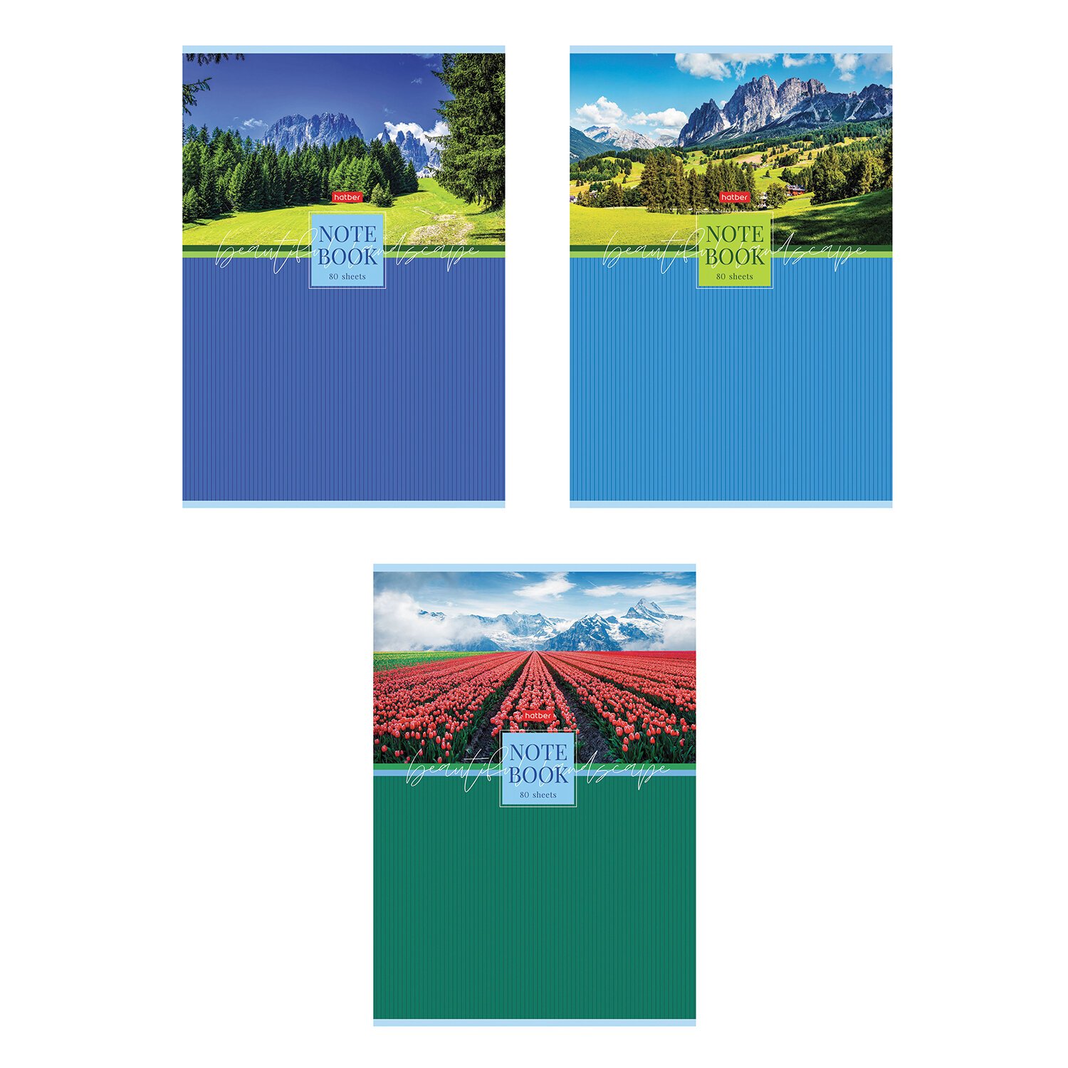 Тетрадь А4 80л. HATBER скоба, клетка, глянцевая ламинация, Живописные пейзажи (микс), 083006, 80Т4лВ1