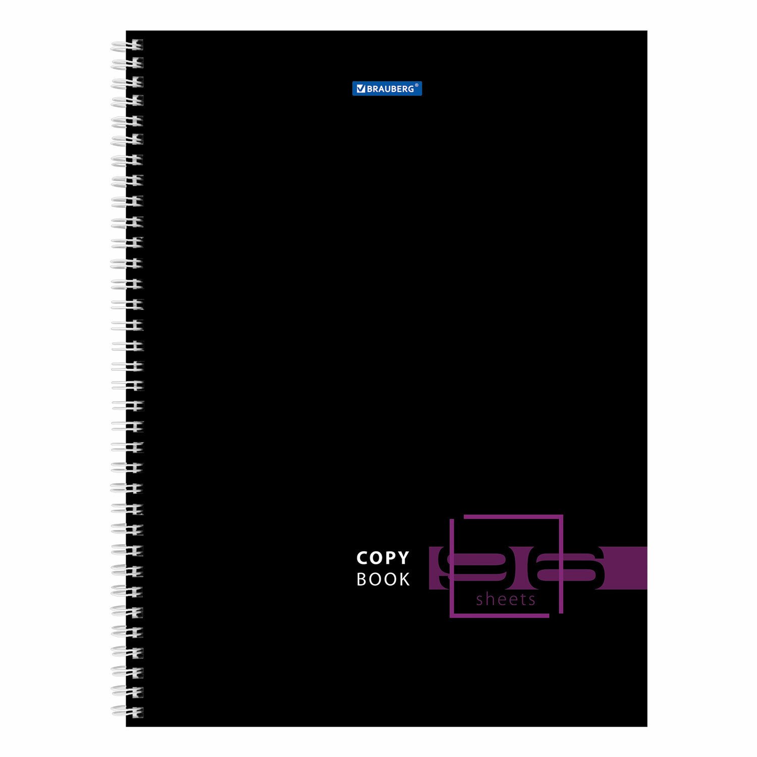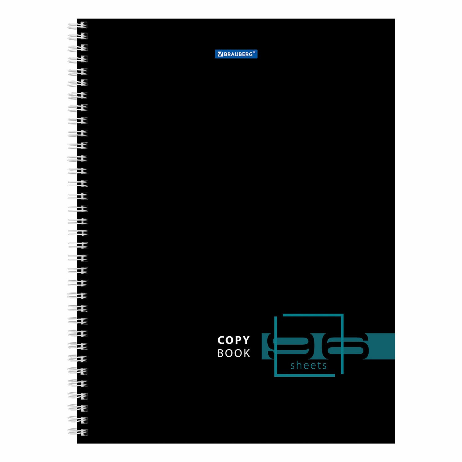 Тетрадь А4, 96 л., BRAUBERG, гребень, клетка, глянцевый лак, "Dark", 404060