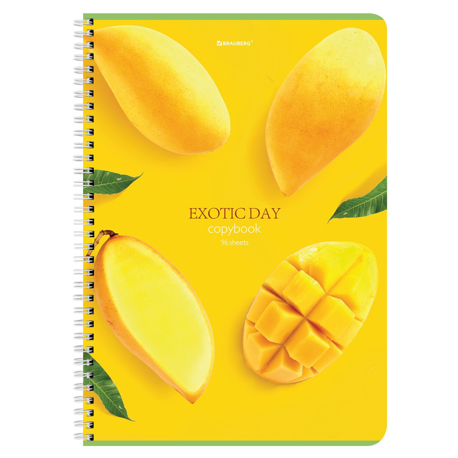 Тетрадь А4, 96 л., BRAUBERG, гребень, клетка, матовая ламинация, "Exotic", 404062