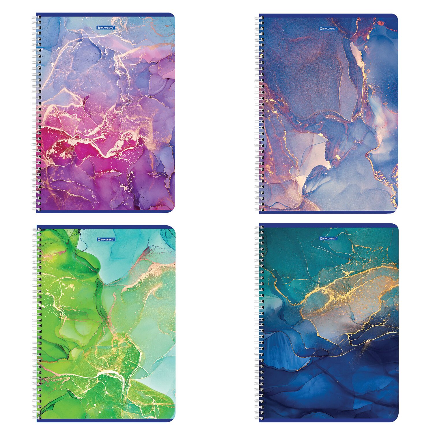 Тетрадь А4, 96 л., BRAUBERG, гребень, клетка, матовая ламинация, "Marble", 404063