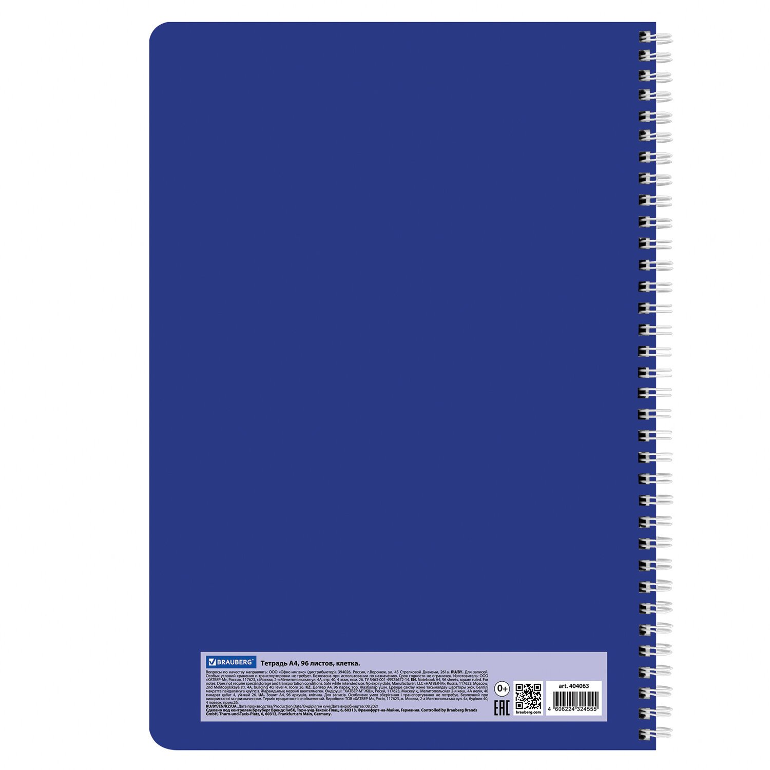Внутренний блок содержит 96 листов офсетной бумаги плотностью 65 г/м2. Обложка изготовлена из мелованного картона и покрыта матовой пленкой. Линовка – клетка. Гребень надежно скрепляет листы между собой. Белизна – 100%. Формат А4.