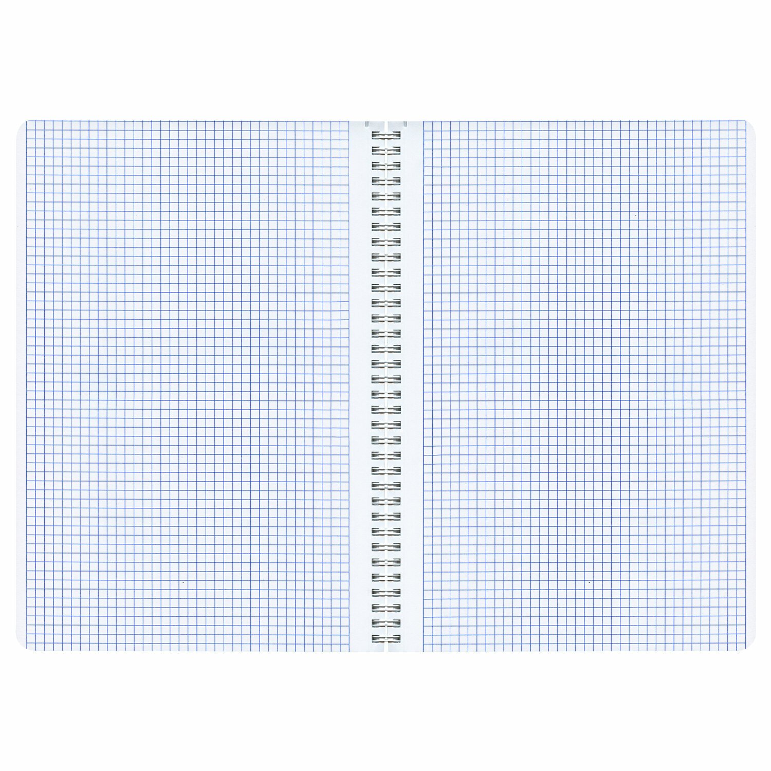 Внутренний блок содержит 96 листов офсетной бумаги плотностью 60 г/м2. Обложка изготовлена из мелованного картона и покрыта матовой пленкой. Линовка – клетка. Гребень надежно скрепляет листы между собой. Белизна – 100%. Формат А4.
