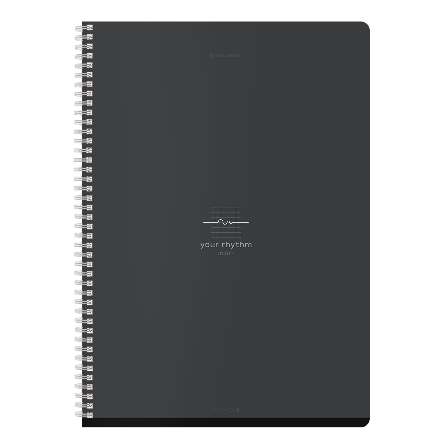 Тетрадь А4, 96 л., BRAUBERG, гребень, клетка, матовая ламинация, Ритм, (микс в спайке), 405321