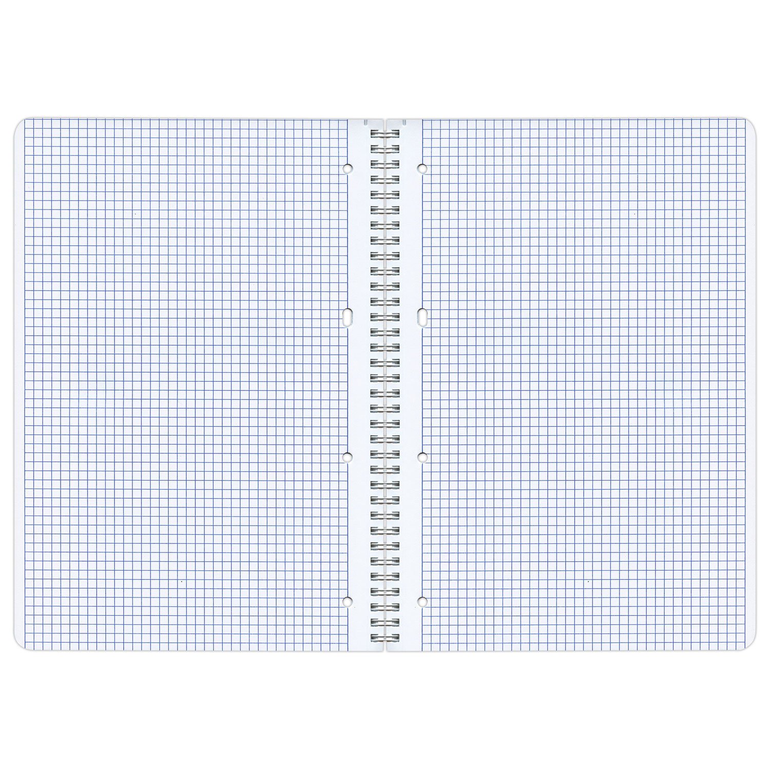 Внутренний блок содержит 96 листов офсетной бумаги плотностью 65 г/м2. Обложка изготовлена из мелованного картона. Линовка – клетка. Евроспираль надежно скрепляет листы между собой. Белизна – 100%. Формат А4.
