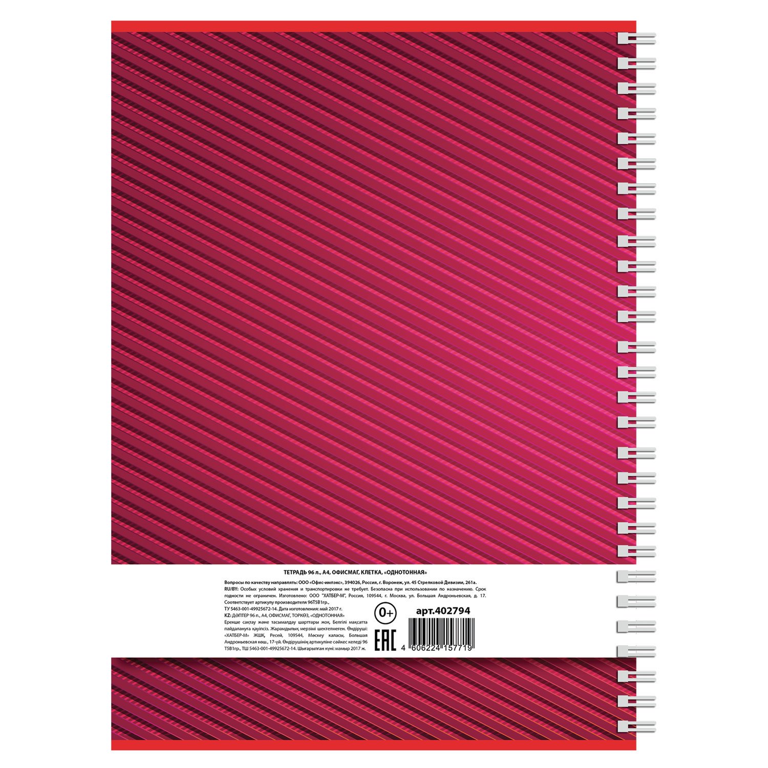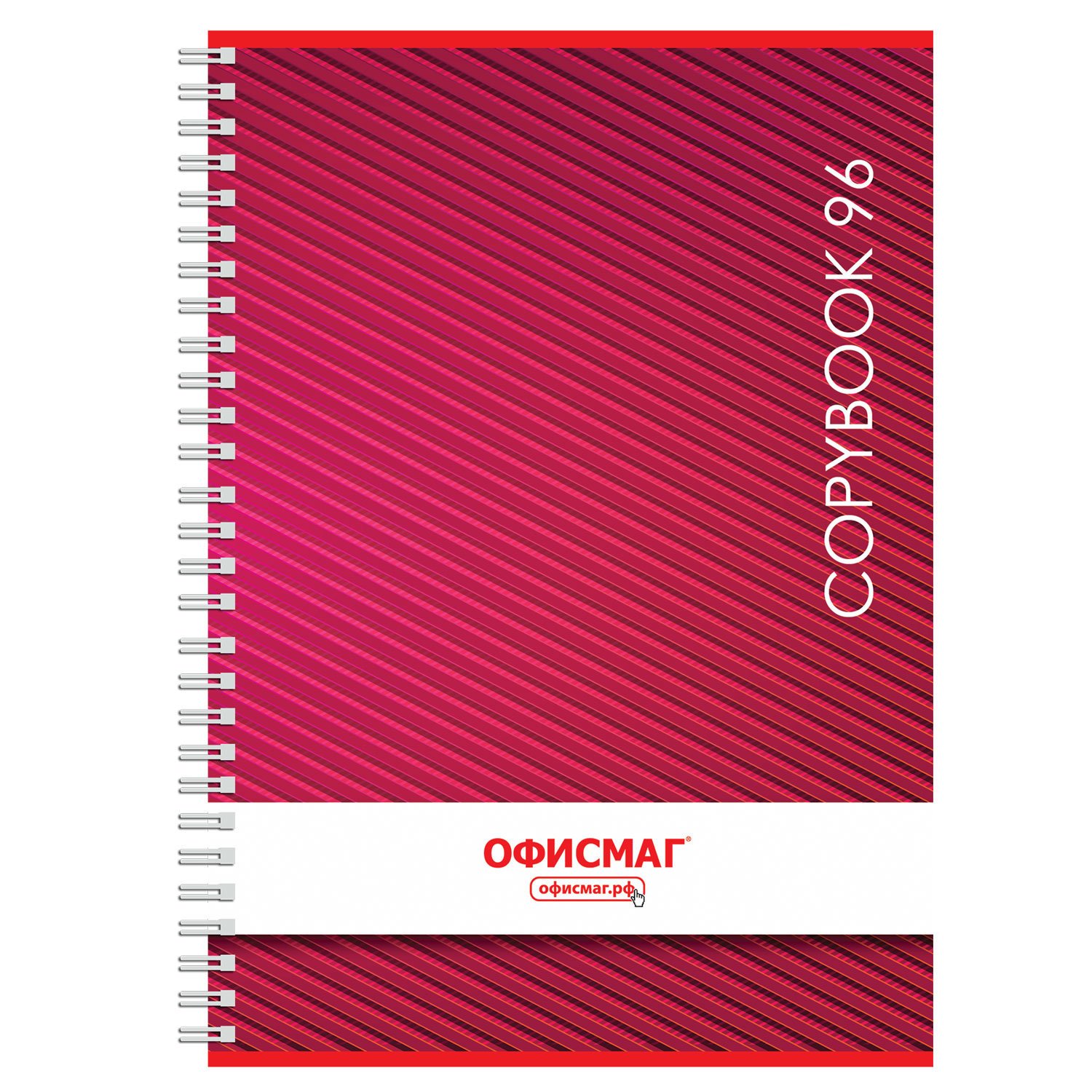 Тетрадь А4, 96 л., ОФИСМАГ, гребень, клетка, обложка картон, ОДНОТОННАЯ, 402794