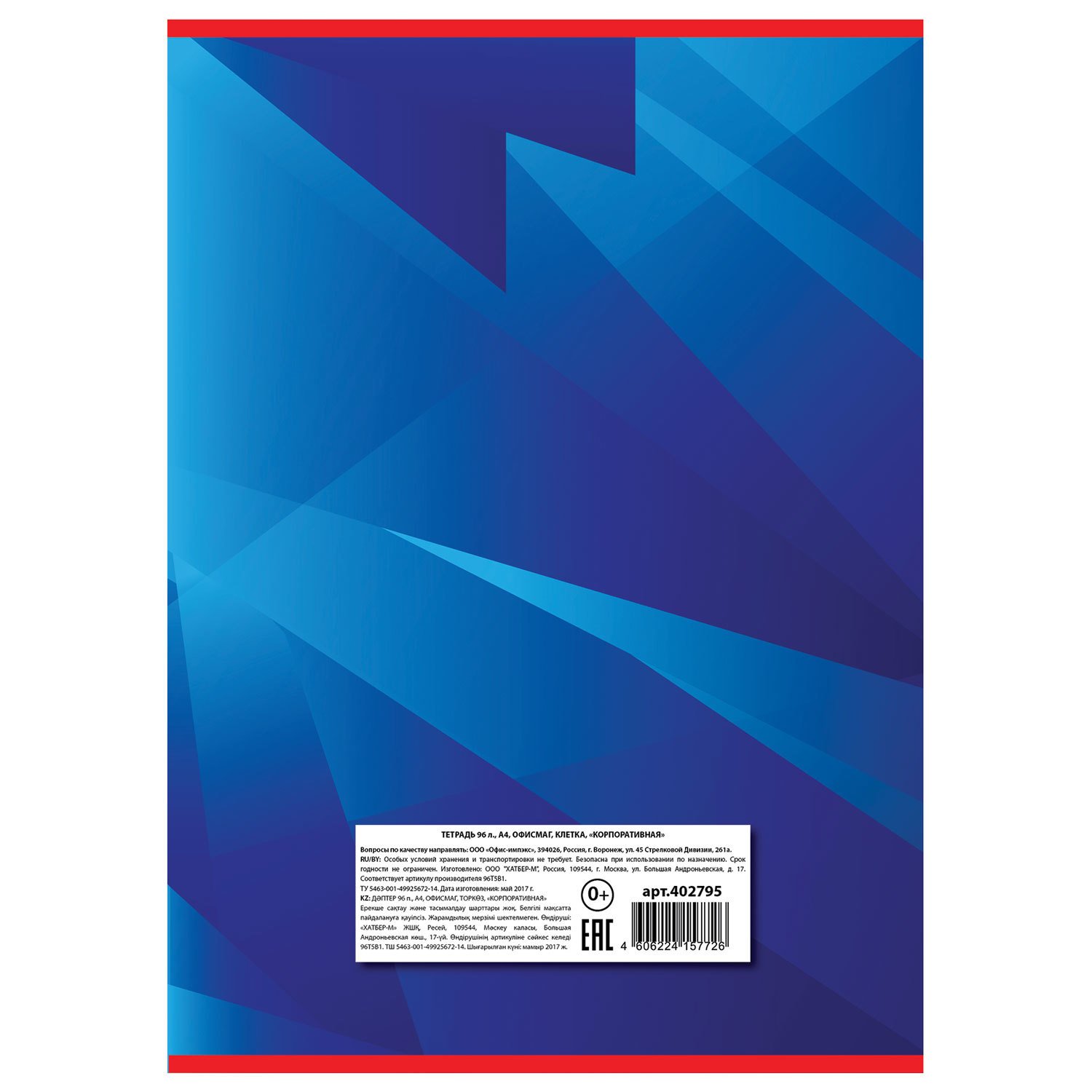 Тетрадь А4, 96 л., ОФИСМАГ скоба, клетка, обложка картон, КОРПОРАТИВНАЯ, 402795