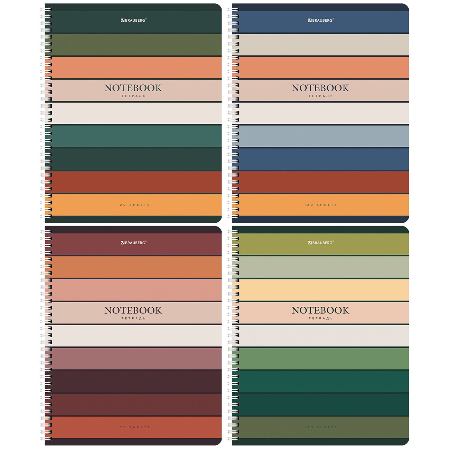 Тетрадь А5 120 л. BRAUBERG пастельная, гребень, клетка, обложка картон, "Pastel Tone" (микс в спайке), 404445