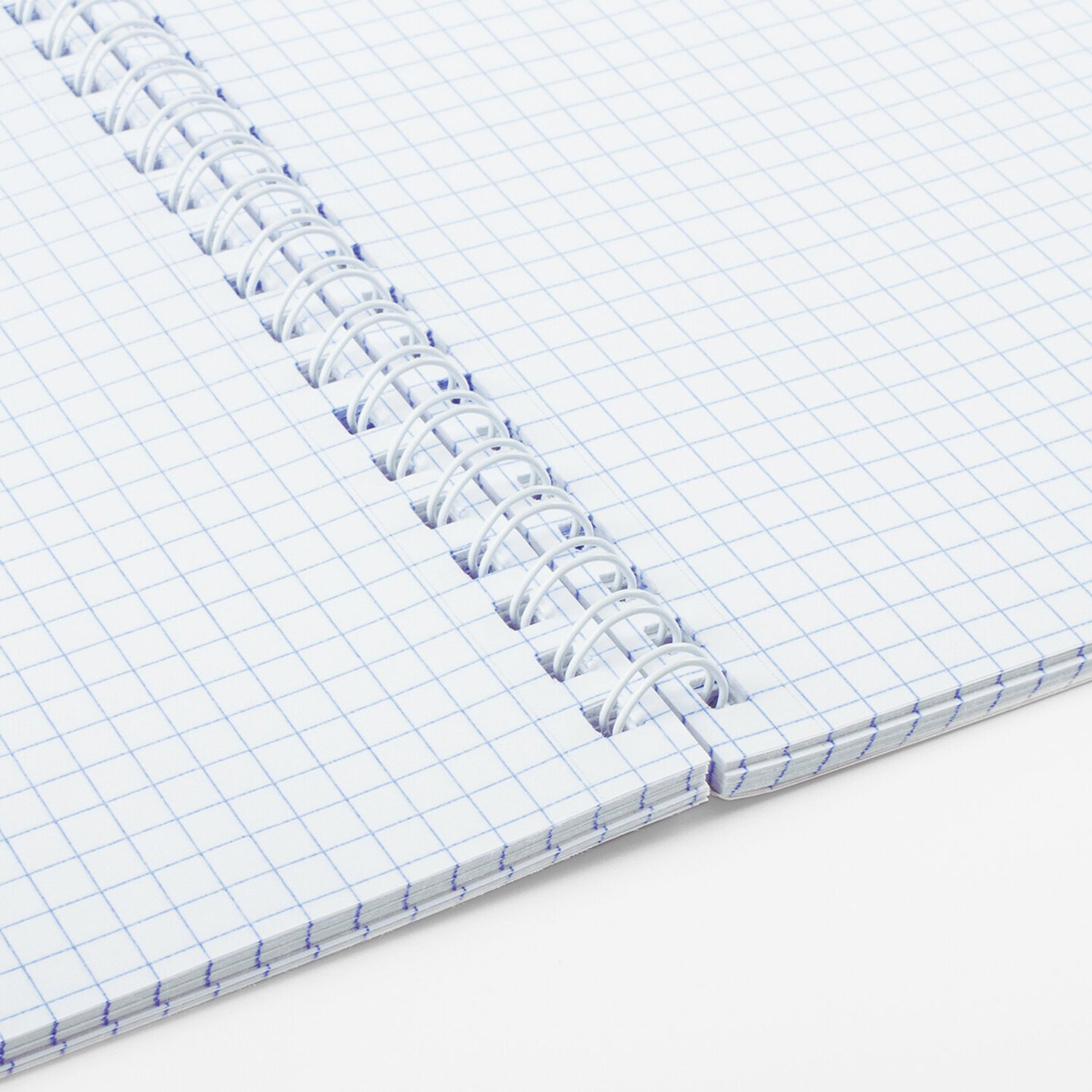 Внутренний блок содержит 120 листов офсетной бумаги плотностью 65 г/м2. Обложка изготовлена из мелованного картона. Линовка - клетка. Гребень надежно скрепляет листы между собой. Белизна - 100%. Формат А5.