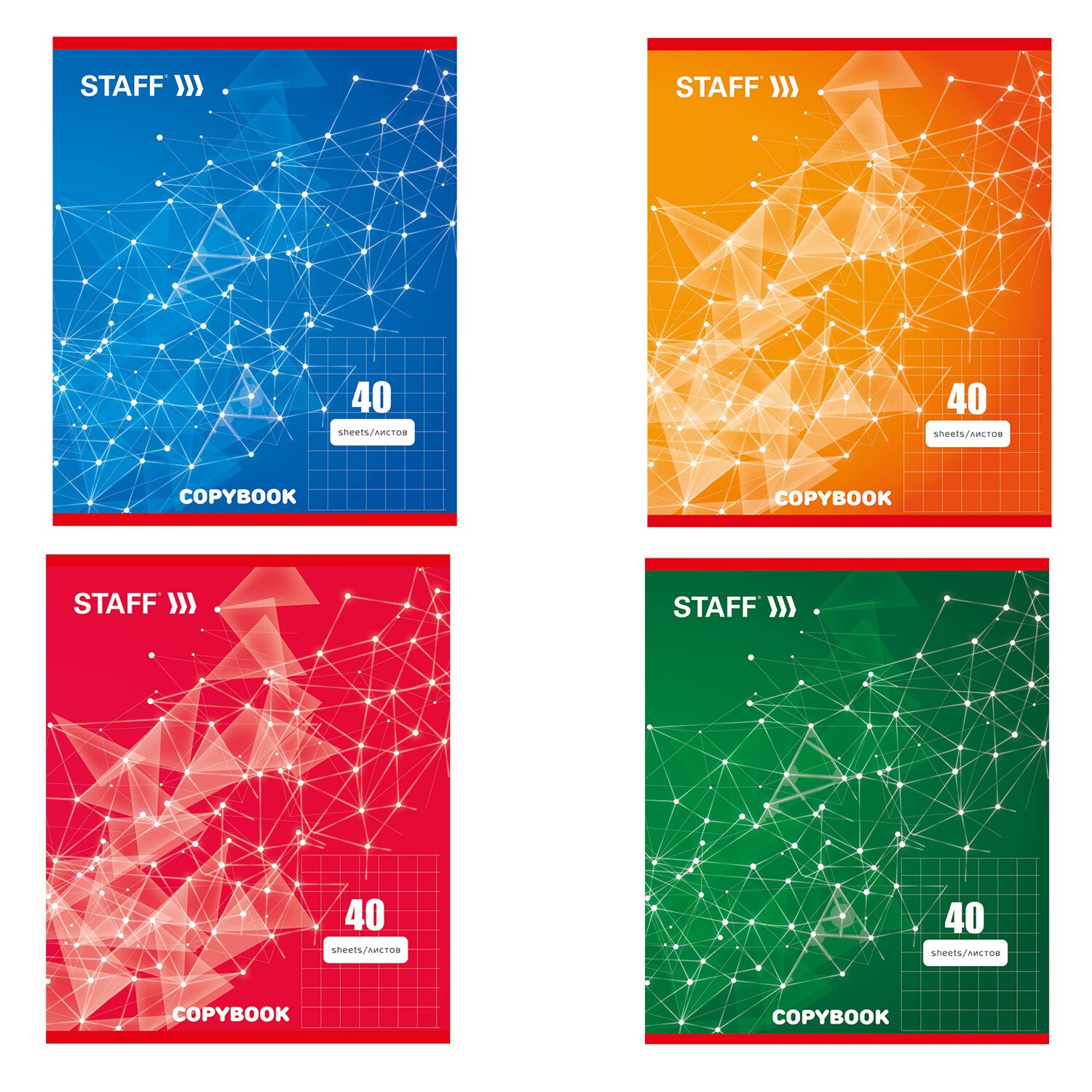 Тетрадь А5, 40 л., STAFF скоба, клетка, офсет №2 ЭКОНОМ, обложка картон, "ЭКСКЛЮЗИВ", 402645