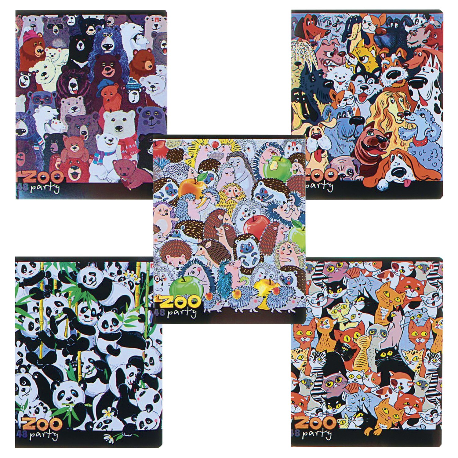 Тетрадь А5 48 л. АЛЬТ скоба, клетка, гибридный лак, "ZOO-PARTY", 7-48-995