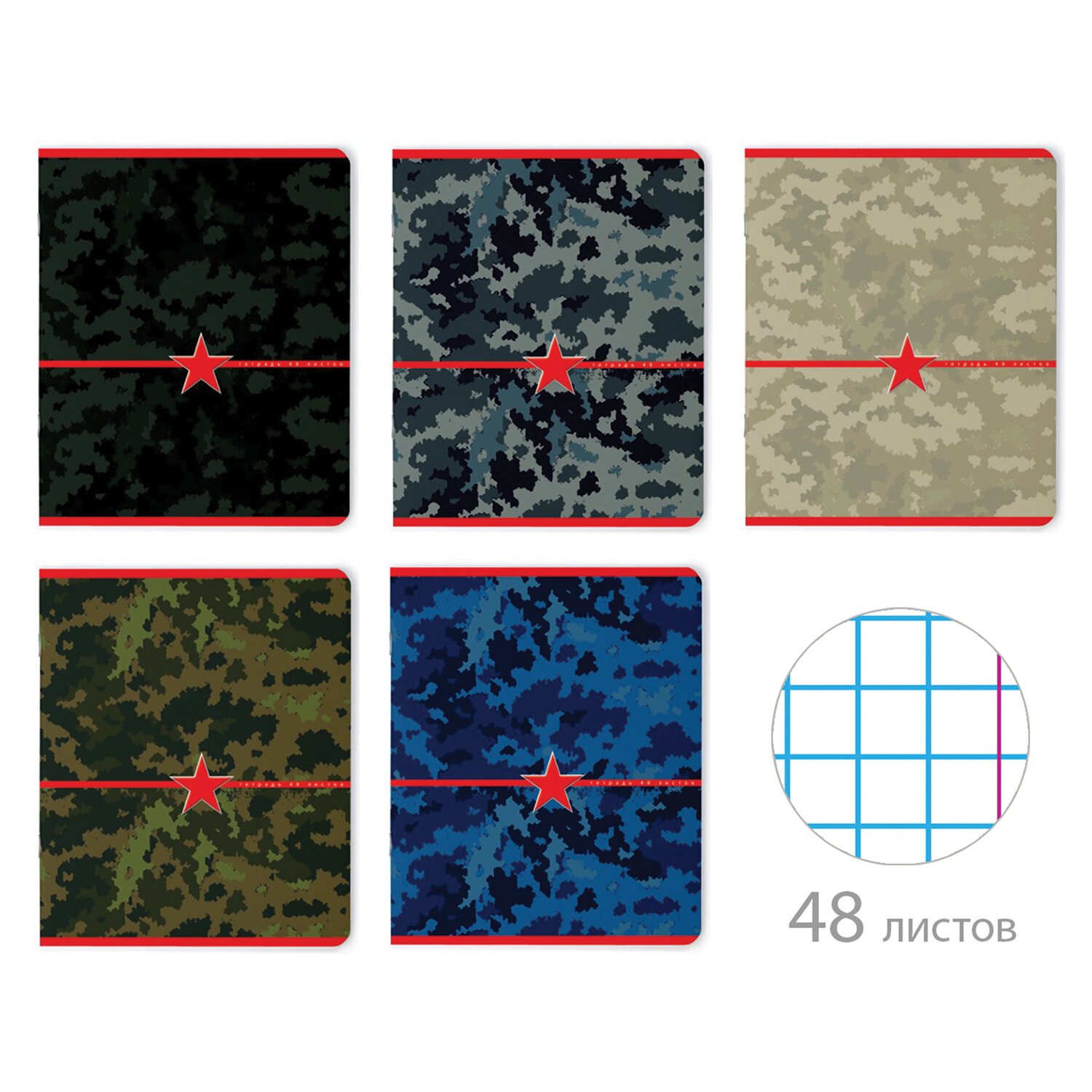 Тетрадь А5 48 л. АЛЬТ скоба, клетка, глянцевый лак, "Милитари. Камуфляж" (5 видов), 7-48-604