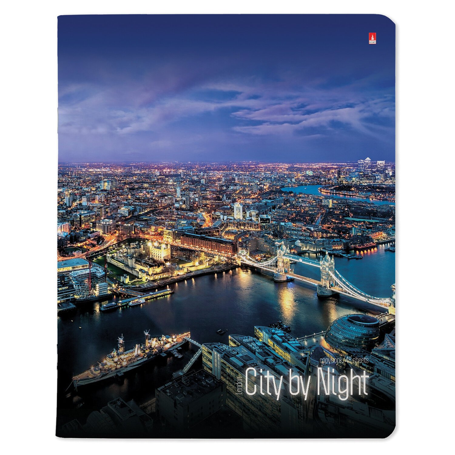 Тетради «Ночные города» формата А5 (165х203 мм) в клетку состоят из 48 листов на скрепках. Бумага обладает плотностью 60 г/м2, наивысшим качеством и соответствует принятым ГОСТам.