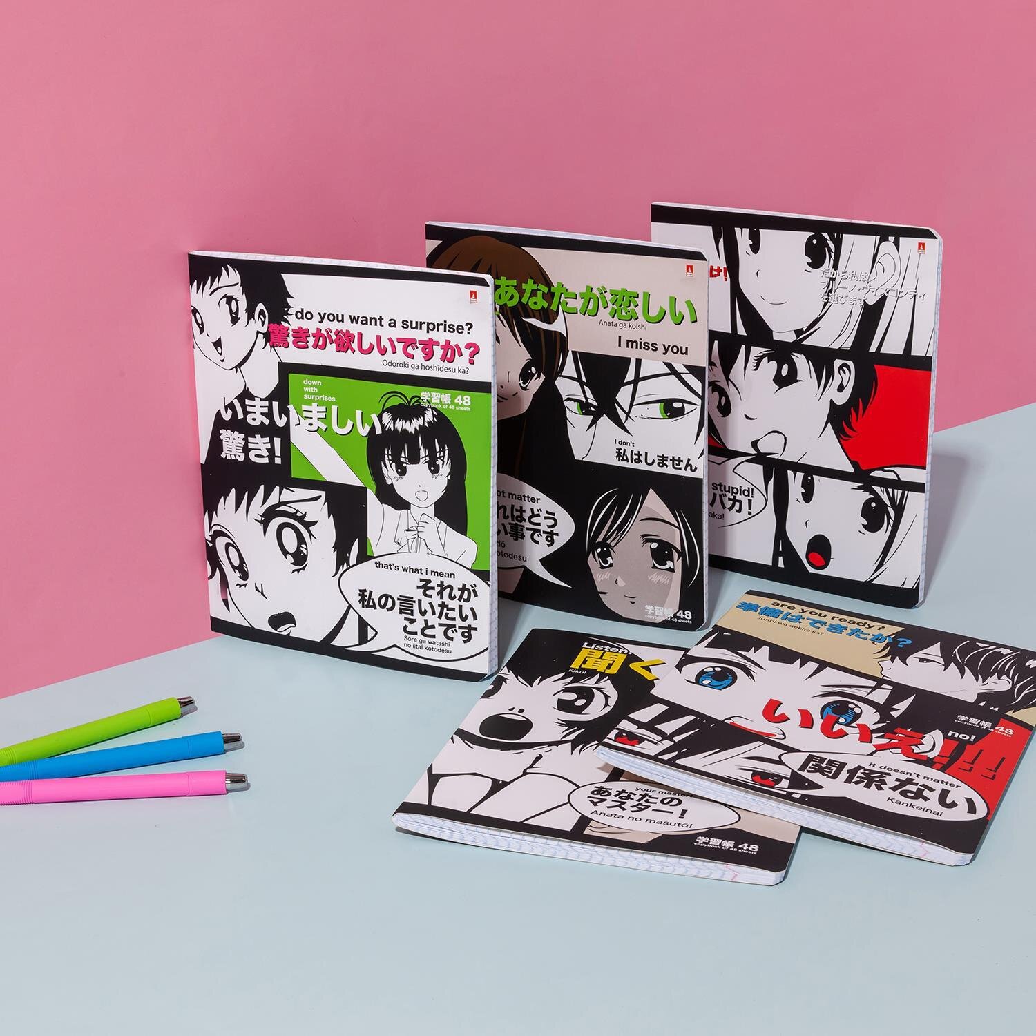 Серию общих тетрадей АЛЬТ «MANGA ANIME» создали дизайнеры, вдохновленные японскими комиксами. Скругленные углы тетради предотвращают появление заломов. Тетради идеальны для учебы, планирования дел, заметок, набросков.