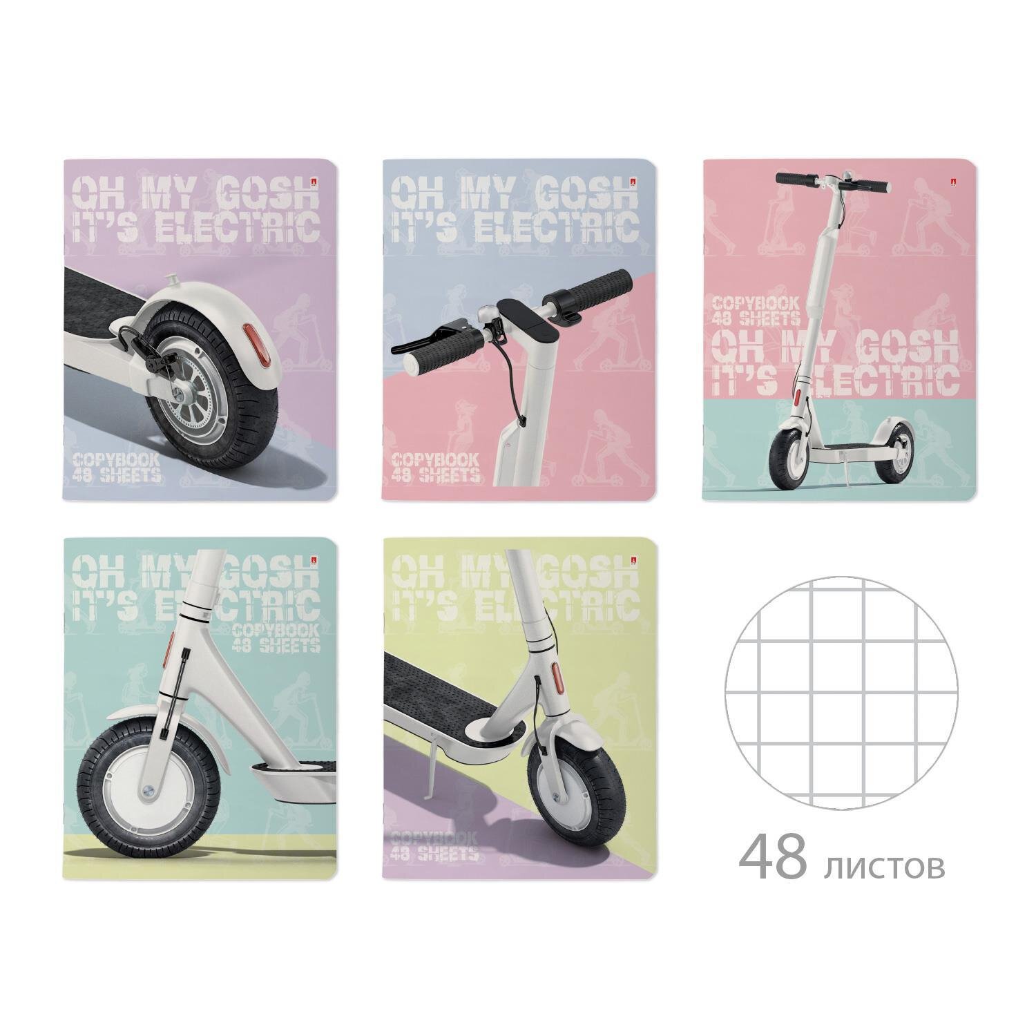 Тетрадь А5 48 л. АЛЬТ скоба, клетка, Soft Touch, "Самокат" (5 видов), 7-48-1174