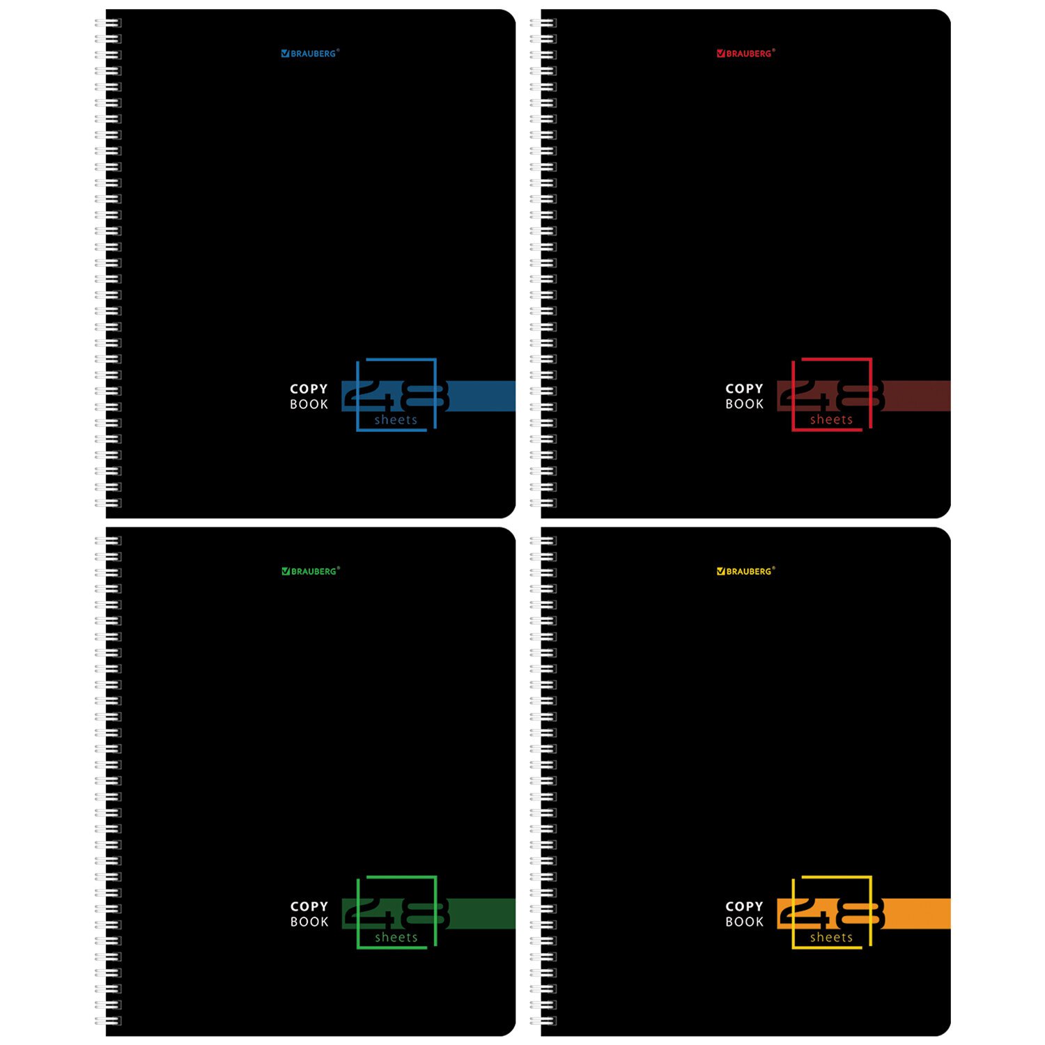 Тетрадь А5 48 л. BRAUBERG, гребень, клетка, глянцевая ламинация, "Color" (микс в спайке), 404342